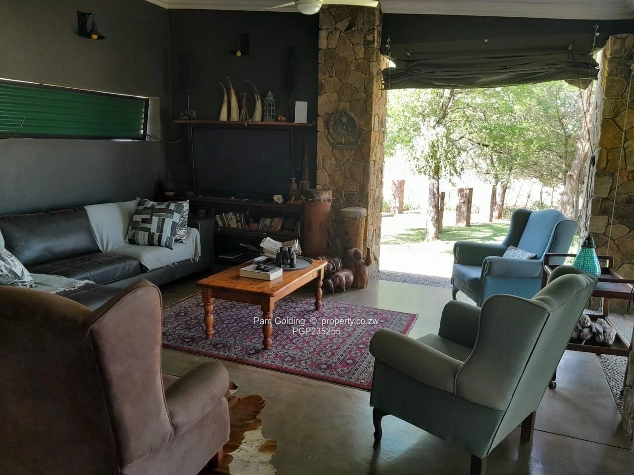 We are proud to present this exquisite, modern stylish home in a unique protected location. This is a newly constructed home, purpose built by the owner / builder. This solid brick and natural stone structure, with the main feature being the uniquely designed stone pillars and thermal insulated roof. There is one spacious master bedroom with a large en-suite bathroom with shower and a separate guest toilet with shower. There is an open plan kitchen and lounge, overlooking a pristine well-established garden with an installed irrigation system. The property is surrounded by the waters of the Zambezi River and Chinamans Bay. On the grounds is a one-bedroom cottage with an en-suite bathroom, and a standalone room with electrical and water reticulation in place that can easily be converted into a third bedroom. There is a fibreglass lined, low maintenance swimming pool overlooking the river and a beautiful braai and entertainment area. The whole property is completely off grid with a full 5kVa solar system and generator. This unique property sits on 2812sqm stand boasting 280-degree views and has enough space to add more buildings if required.