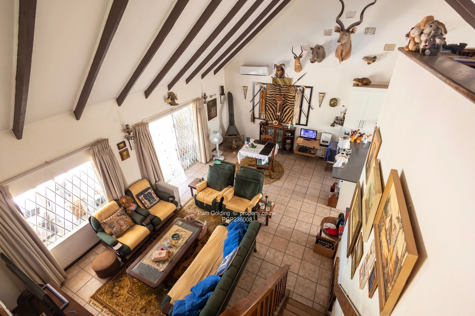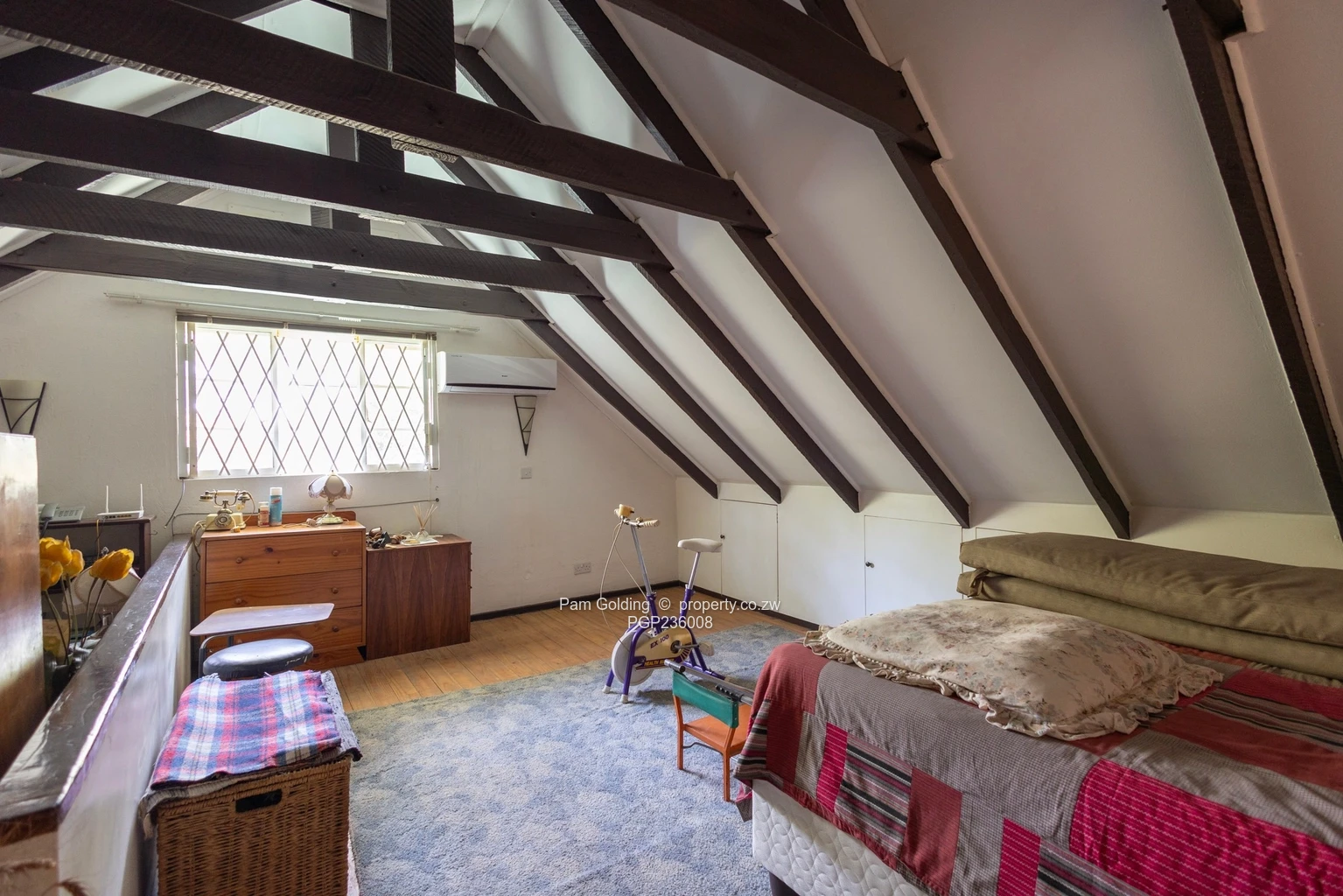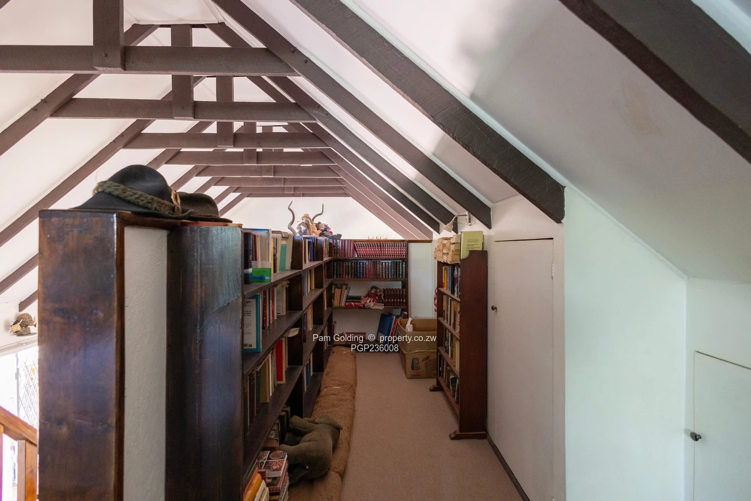Upstairs, the loft bedroom has its own air conditioner and overlooks the lounge and dining room. It opens onto a cosy library nook, perfect for reading or quiet work.
