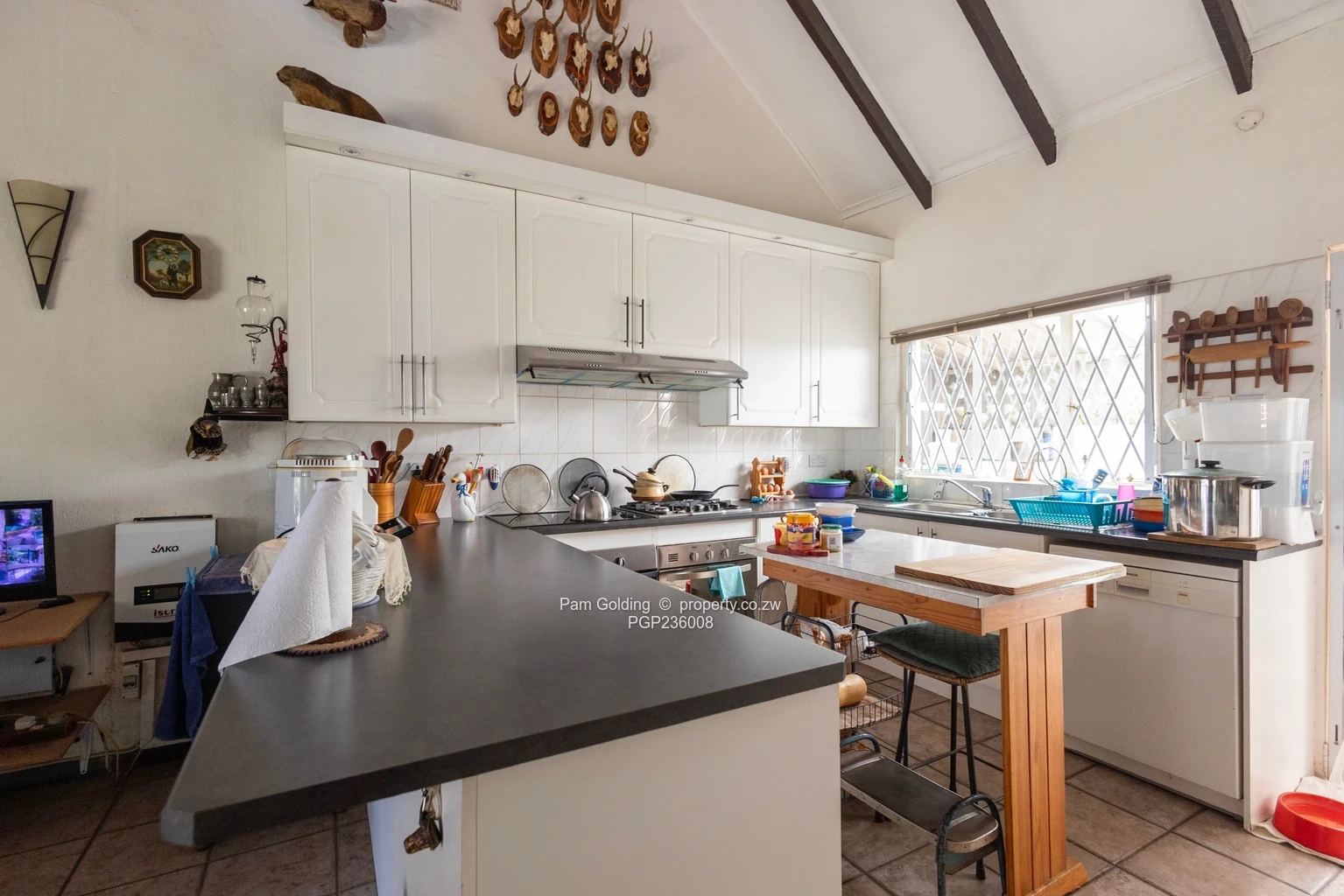 The spacious back verandah leads to an impressive lock-up pantry large enough to accommodate multiple fridges and deep freezers. The scullery and laundry are also located here, along with a neatly enclosed generator.