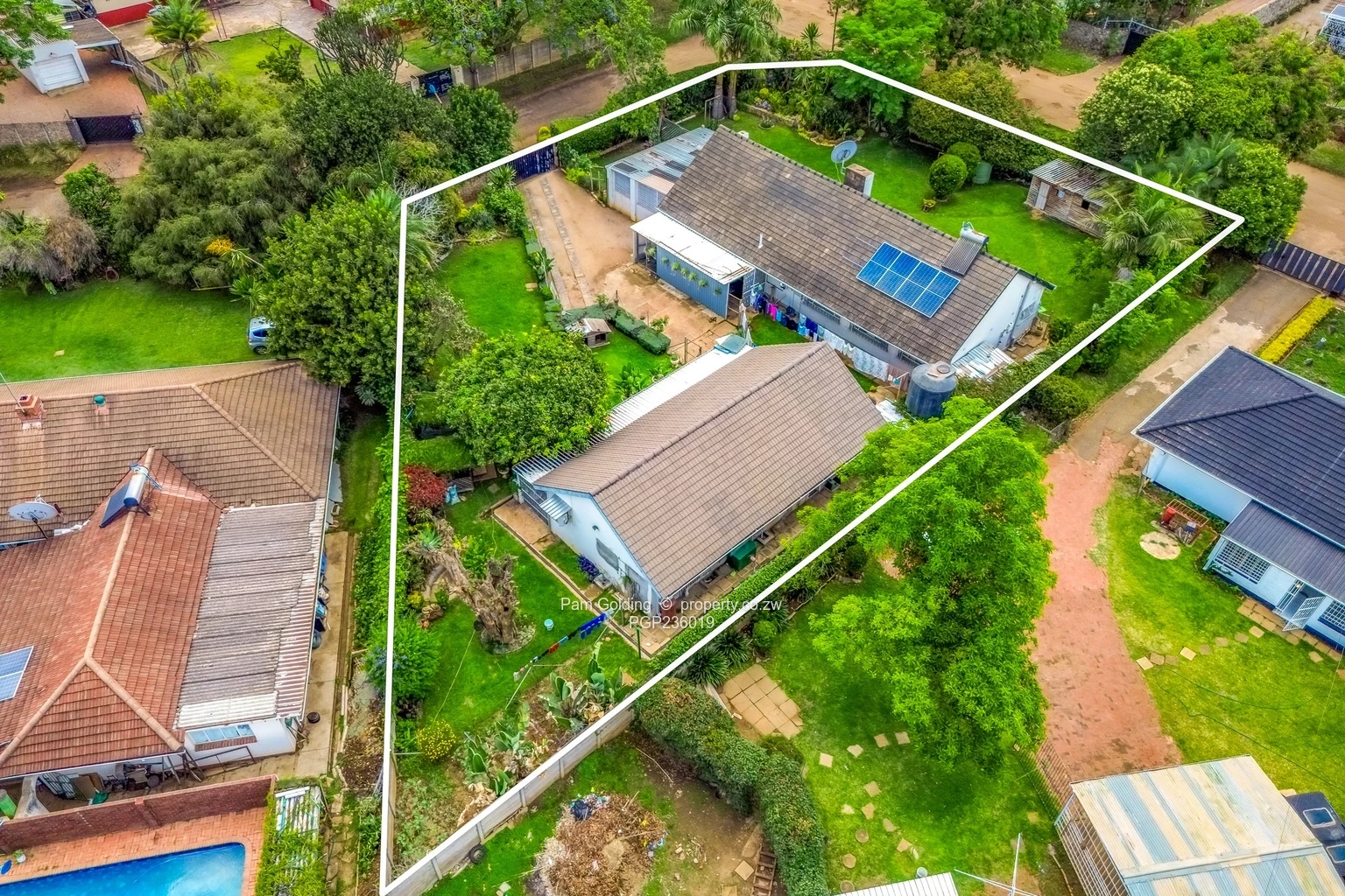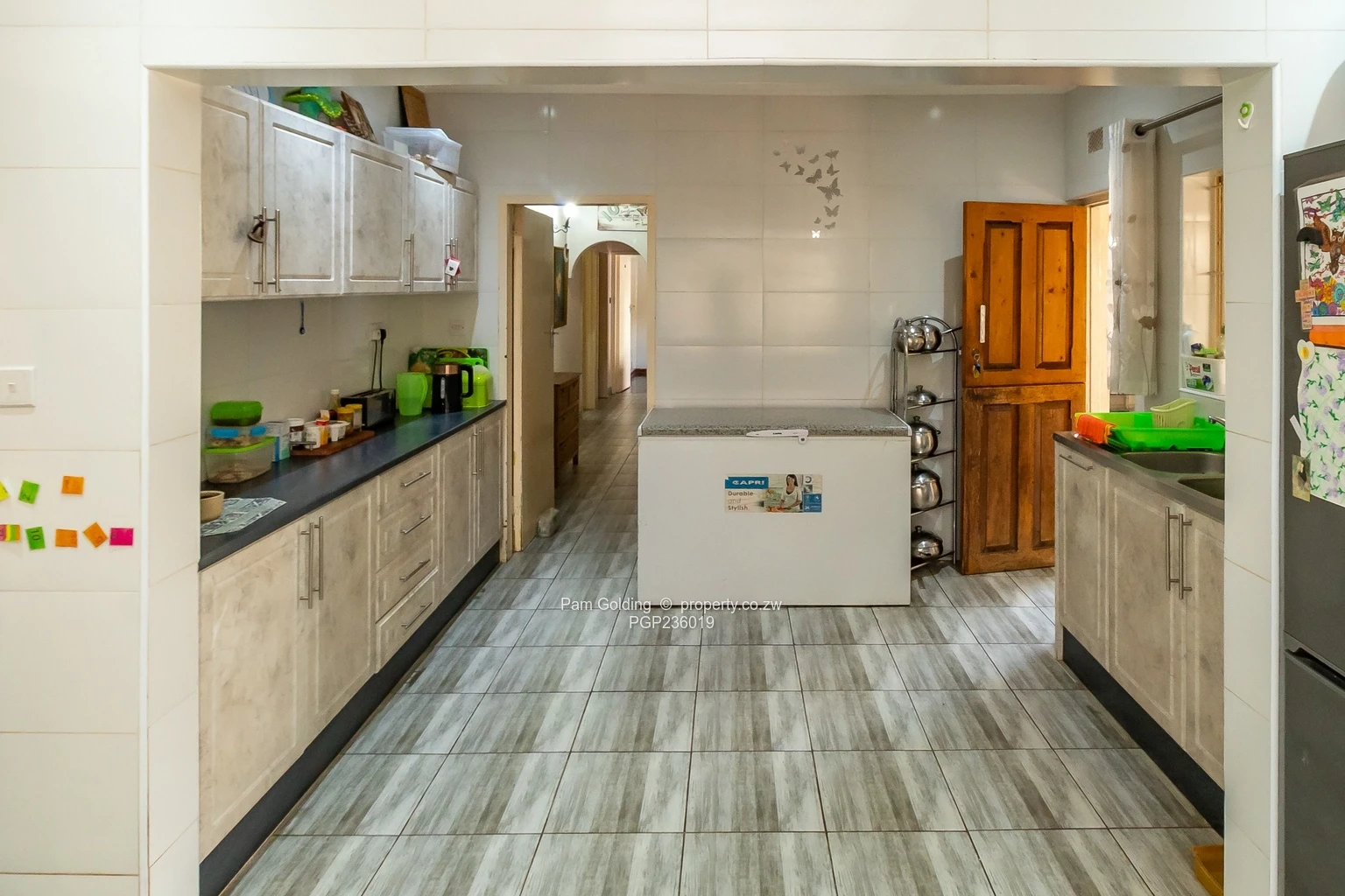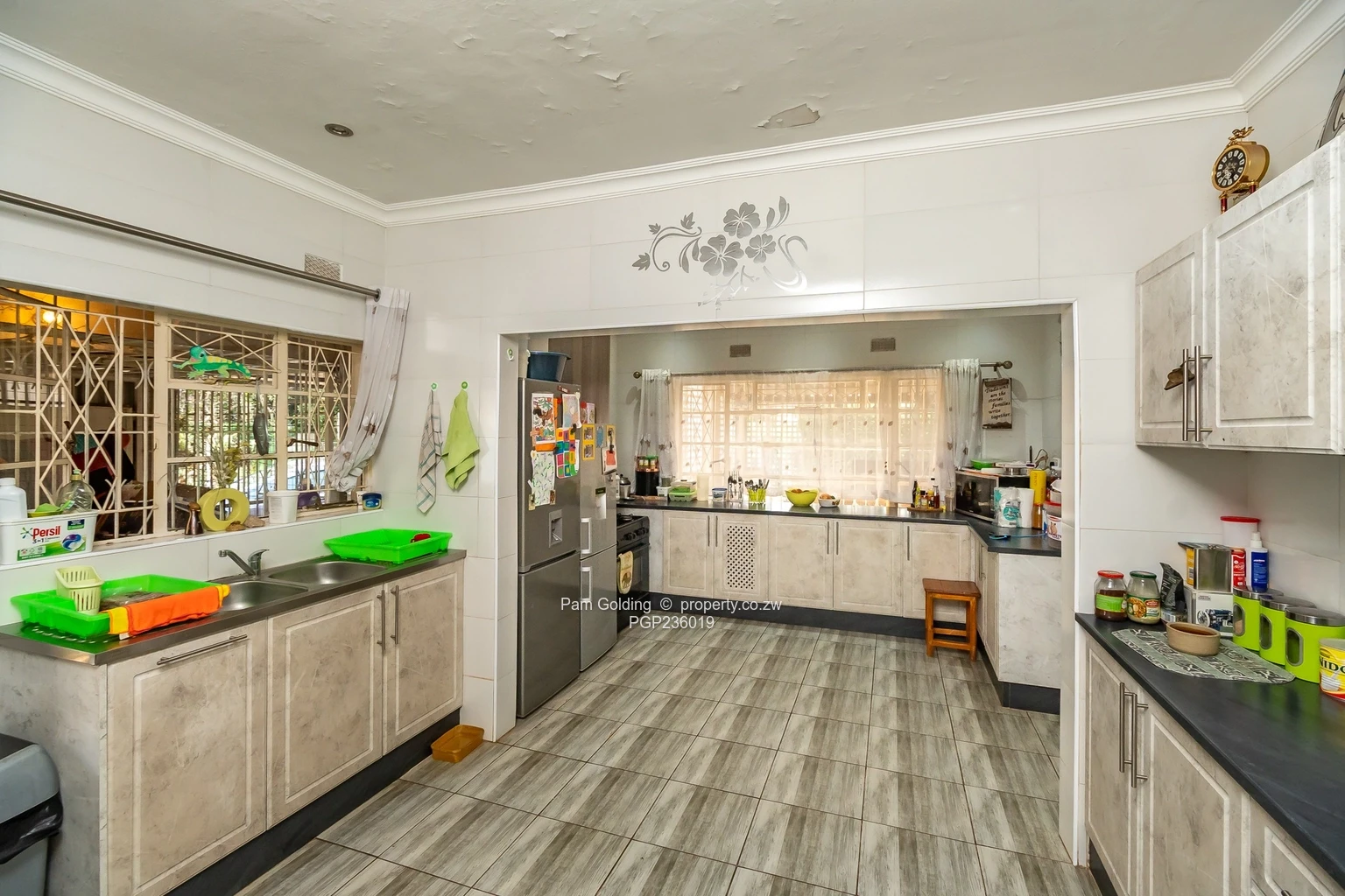 Excellent family home in Eastlea, Harare East — a rare 1555 m² corner garden with 700 m² of built space, offered for sale. As seen in the photos, the property sits behind secure walls and a gated driveway, with a long roofline and multiple outbuildings that create flexible living options. The house offers five well-proportioned bedrooms and two bathrooms (one bathroom with a bathtub visible), generous living and dining areas, and an open kitchen with a central island and adjoining scullery/utility space.