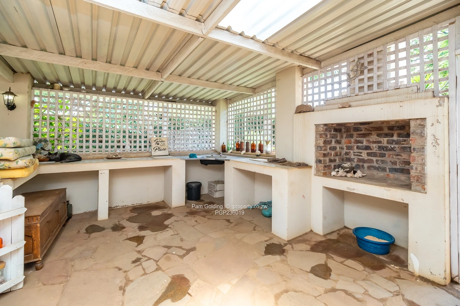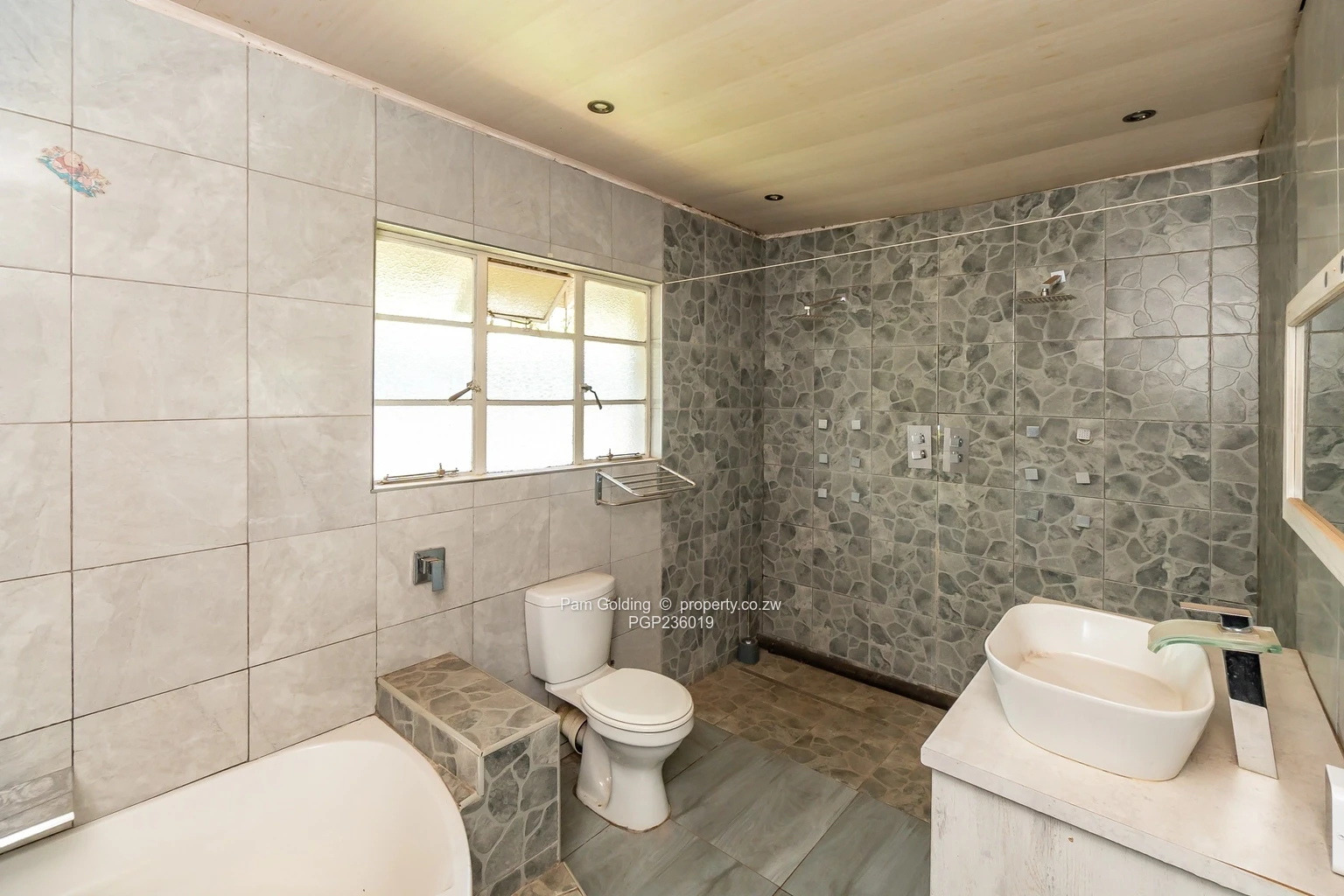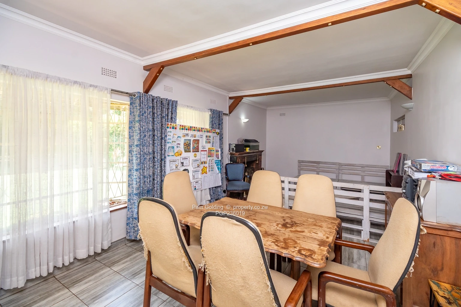 Excellent family home in Eastlea, Harare East — a rare 1555 m² corner garden with 700 m² of built space, offered for sale. As seen in the photos, the property sits behind secure walls and a gated driveway, with a long roofline and multiple outbuildings that create flexible living options. The house offers five well-proportioned bedrooms and two bathrooms (one bathroom with a bathtub visible), generous living and dining areas, and an open kitchen with a central island and adjoining scullery/utility space.