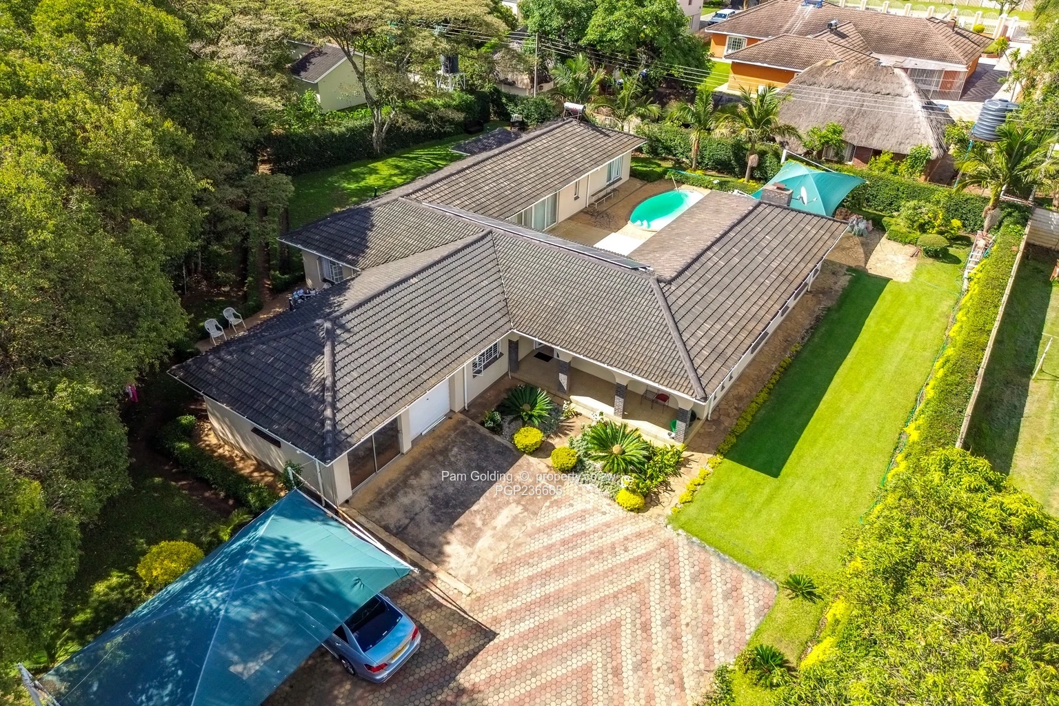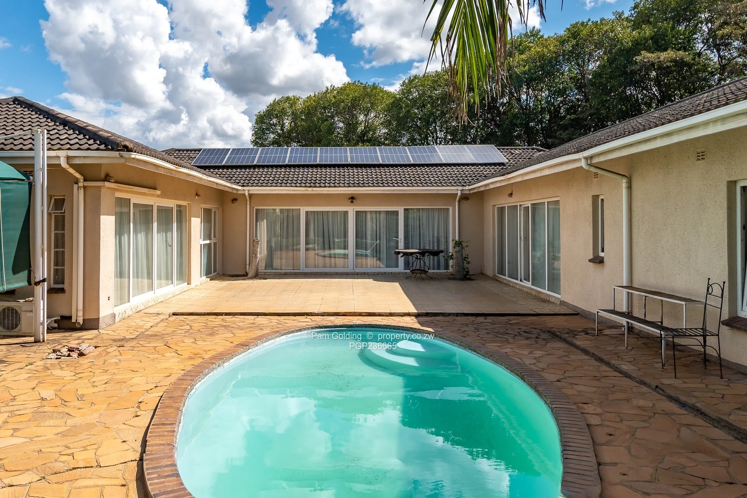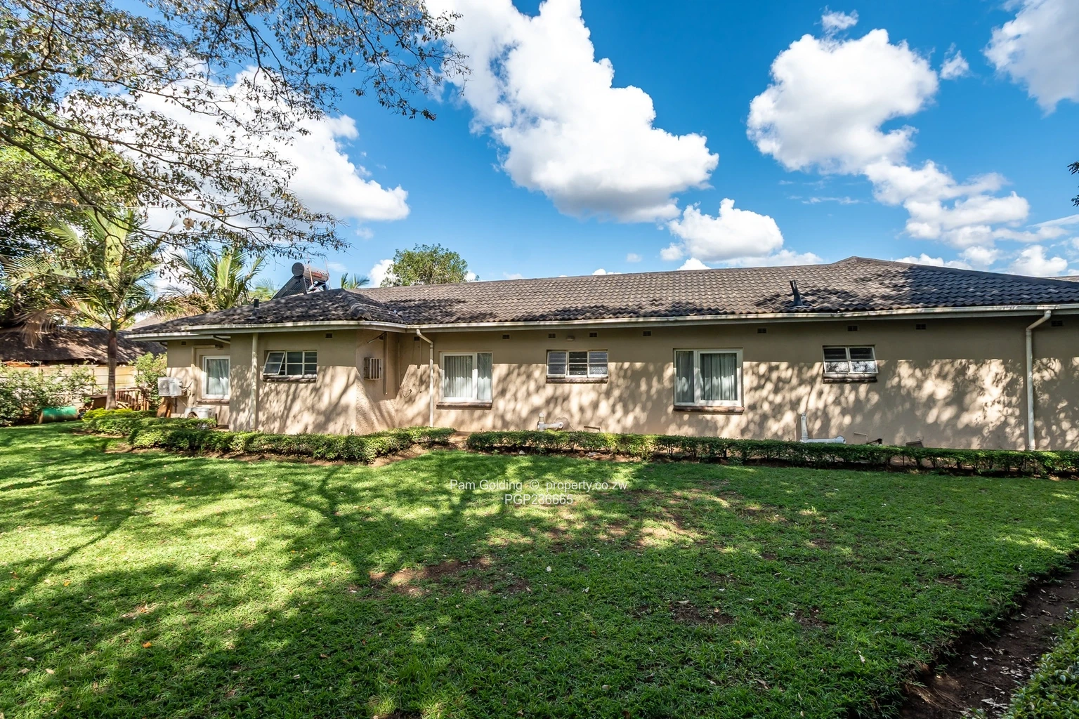 A well presented family home comprising 4 spacious bedrooms 2 bathrooms including a jack and jill bathroom set up ideal for family living, 2 lounges and dining area overlooking a swimming pool perfect for family enjoyment as well as entertaining. There is a good borehole that services a well maintained garden, close to all an.emities