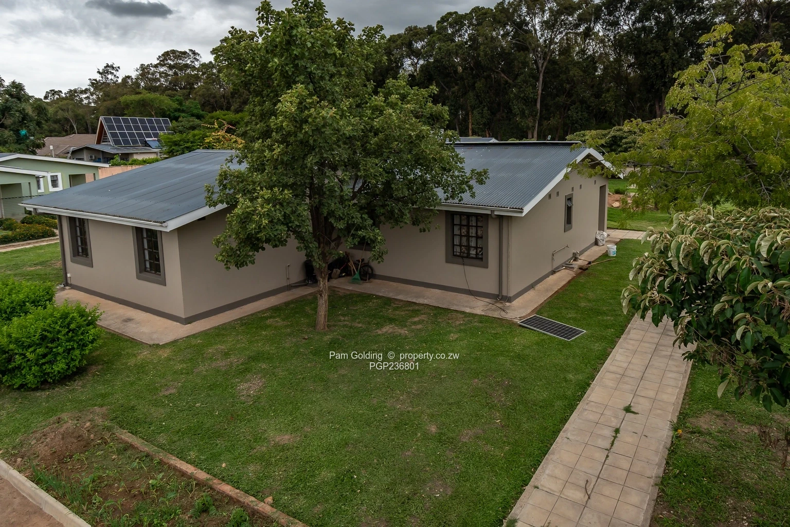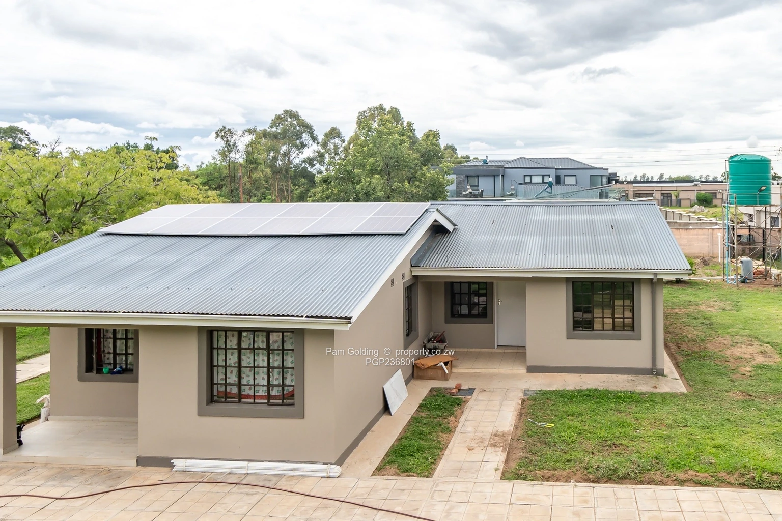 This spacious house in Arlington, Harare, is an ideal family home, boasting four well-appointed bedrooms and two neatly designed bathrooms. The exterior features a contemporary style with a sloped metal roof and energy-efficient solar panels, ensuring sustainability. A beautifully landscaped garden and a concrete patio invite outdoor relaxation.