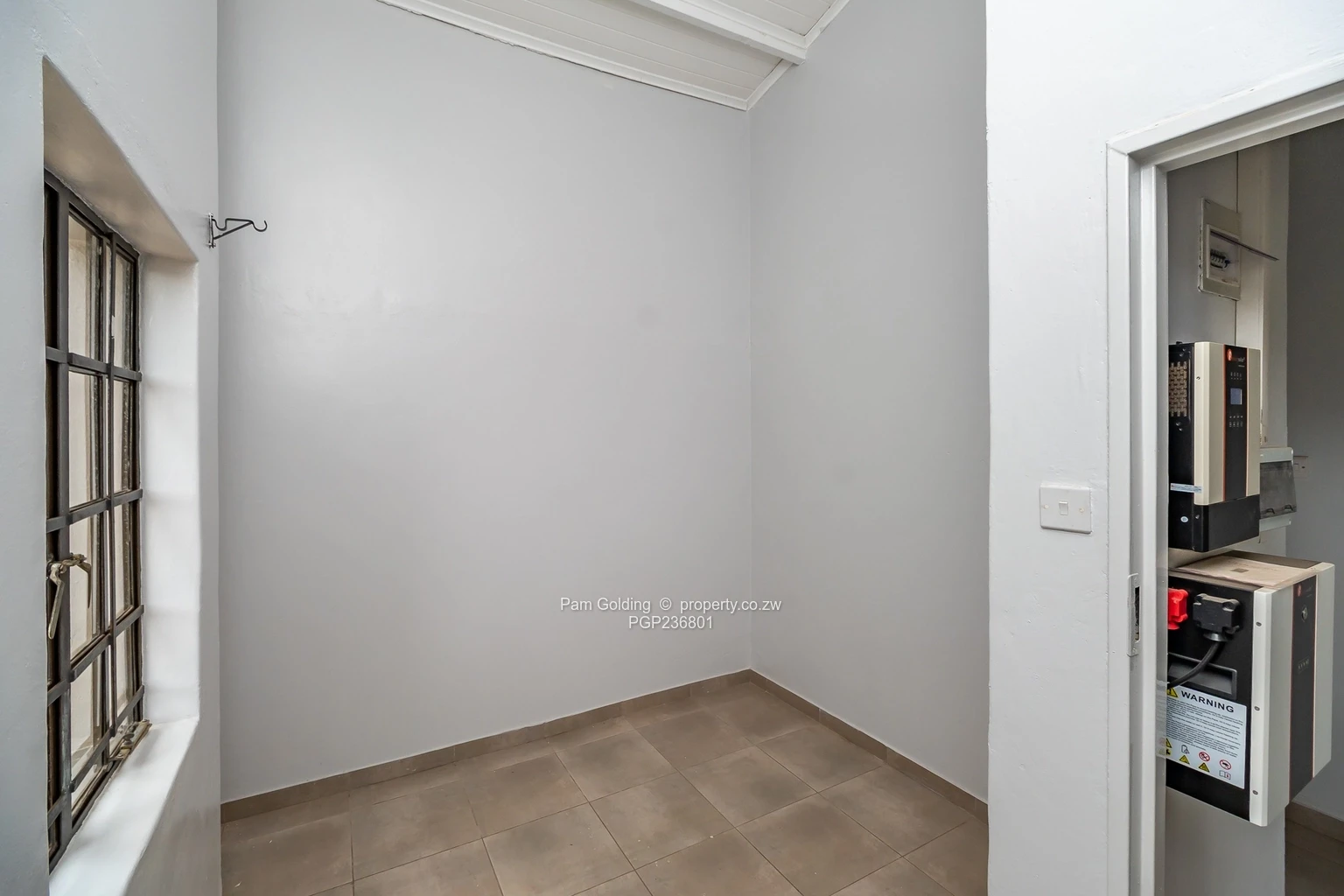 The property is securely walled and fenced, with added safety from a security boom and lighting. With two water tanks, a borehole, and reliable municipal water, you will enjoy uninterrupted water supply.