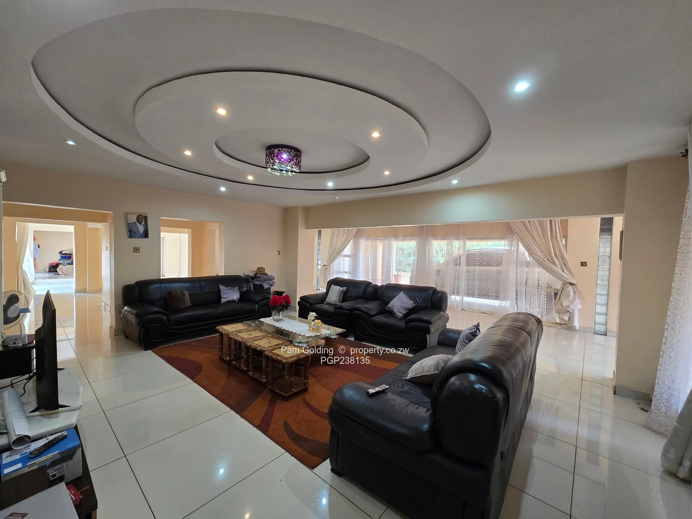 Additional features include a strong room, staff quarters, triple garage, ample additional parking, sliding gate, and the security of a fully durawalled property. A prolific borehole ensures year-round water supply.