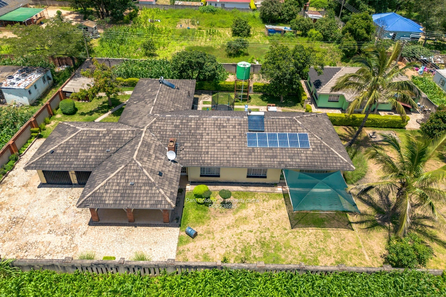 The property has a 5,000-litre water tank fed by a protected well and city council water. About 3km away is Pick n Pay supermarket along Simon Mazorodze Road and the famous Trabablas Interchange.