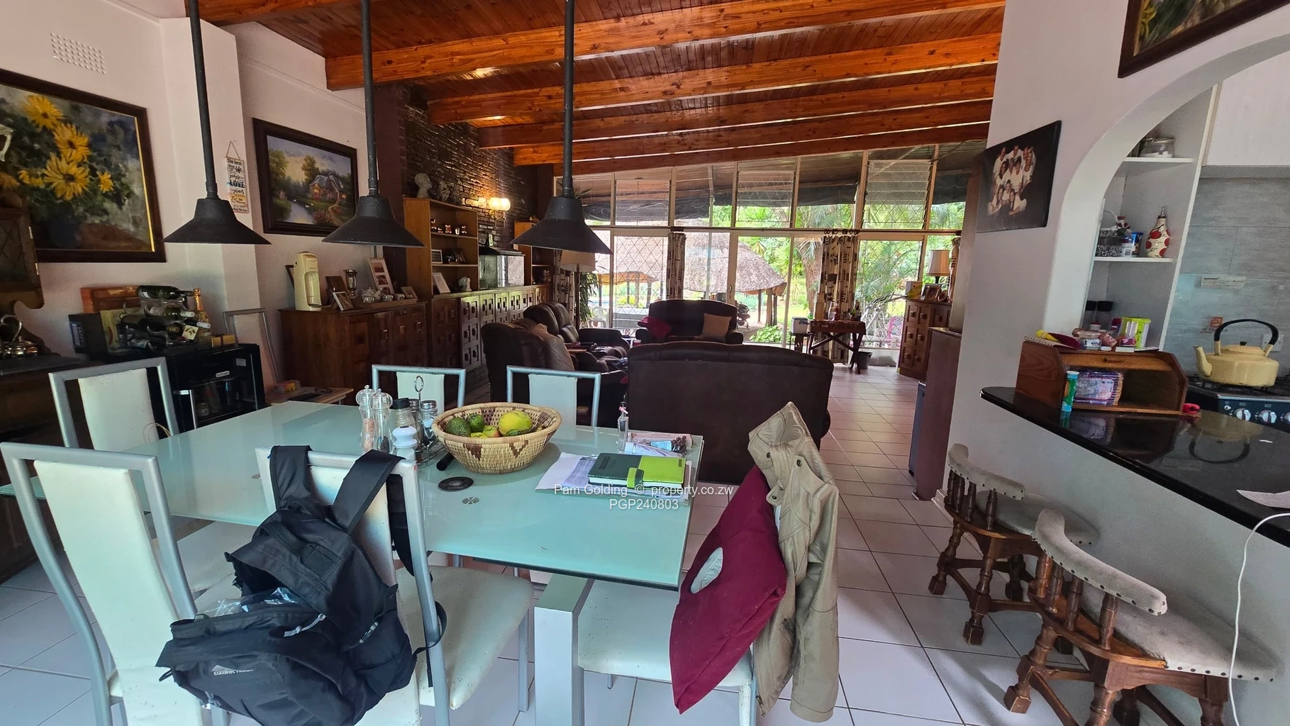 Step inside to discover four spacious bedrooms, including a main en-suite, complemented by two well-appointed bathrooms. The fitted kitchen opens seamlessly into the dining room, perfect for entertaining, has a seperate scullery and pantry. The main lounge is fitted with a fireplace and glass sliding doors opening onto the veranda ensuring comfort and convenience for your family.
