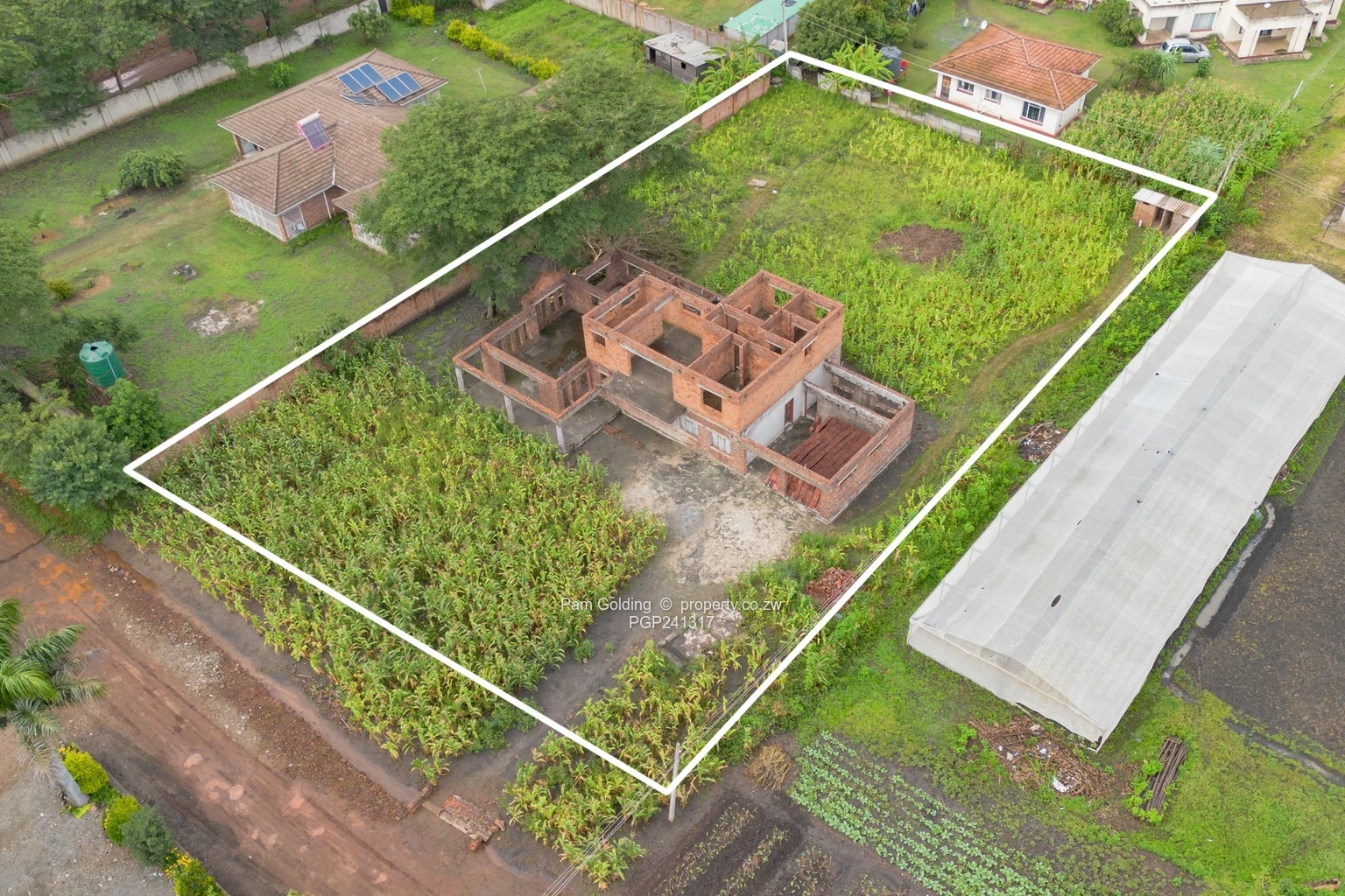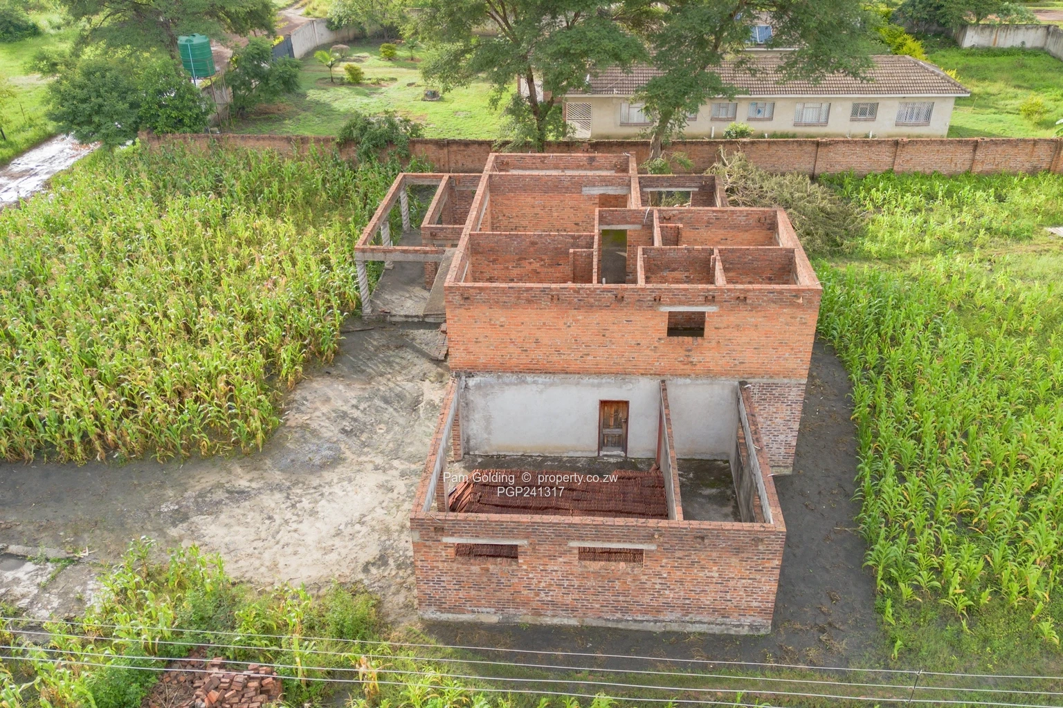 On offer is a well-built incomplete double-storey structure in a cul-de-sac meticulously built to wall plate level.