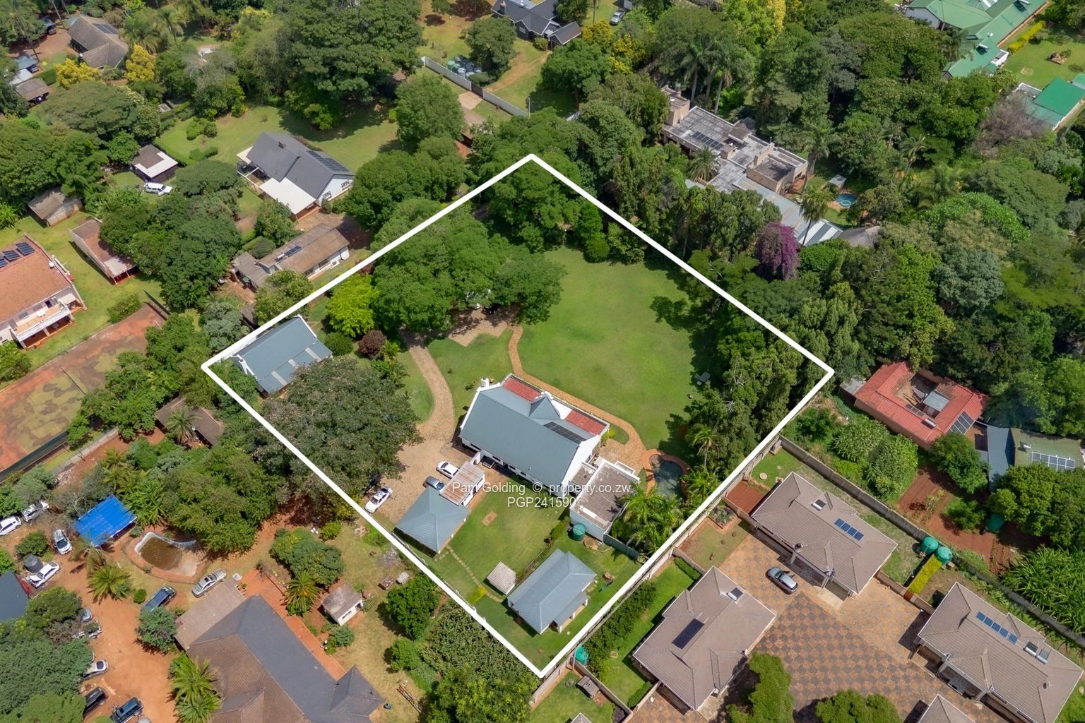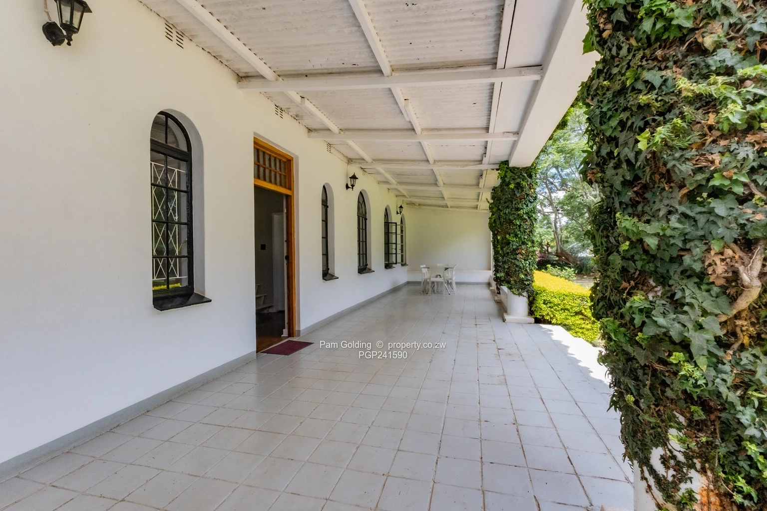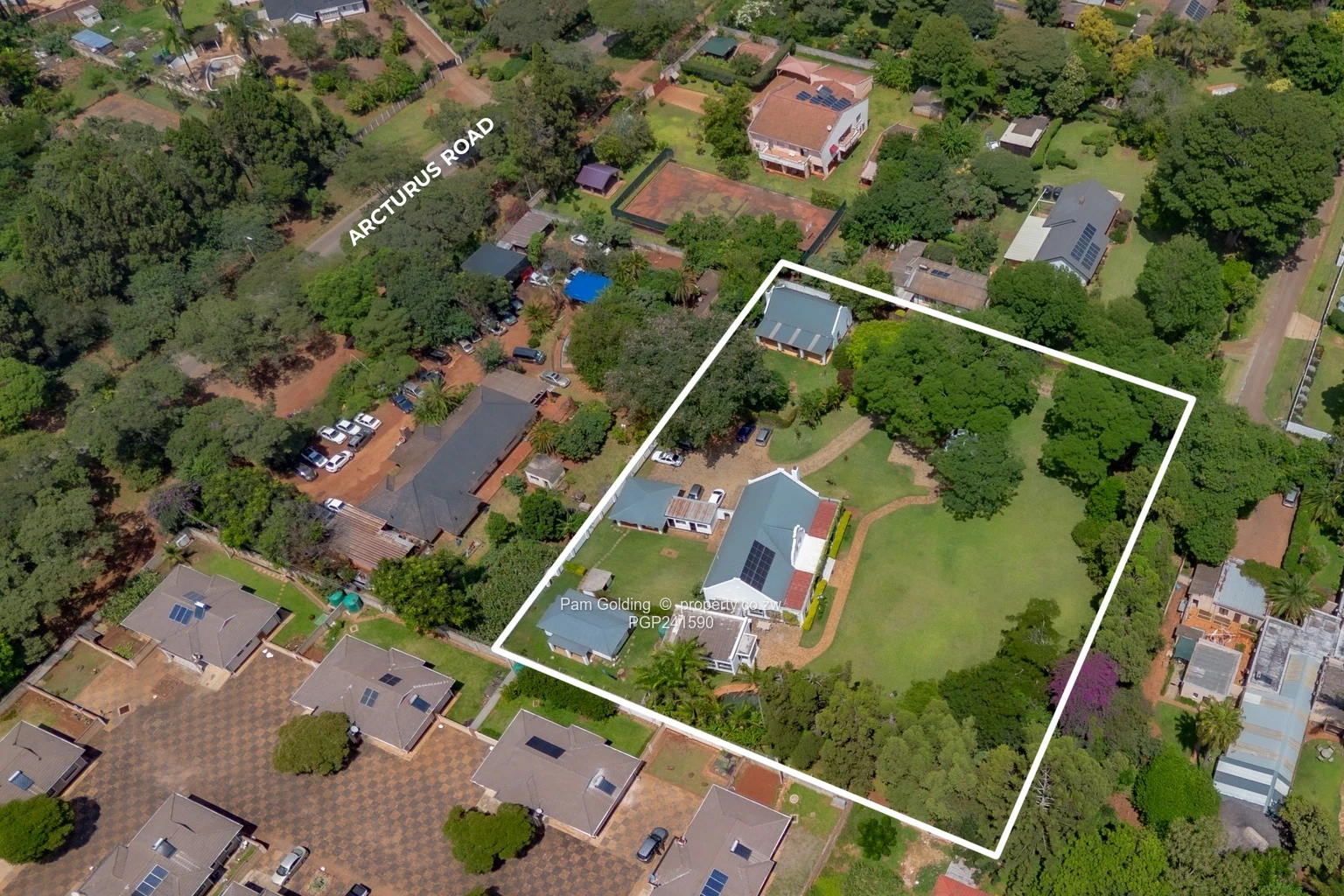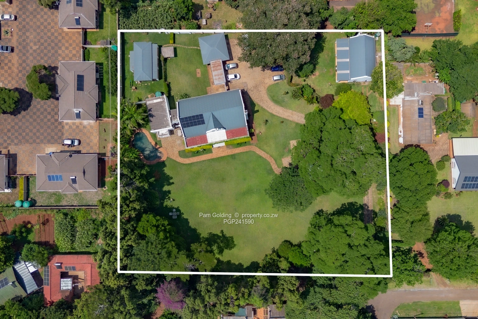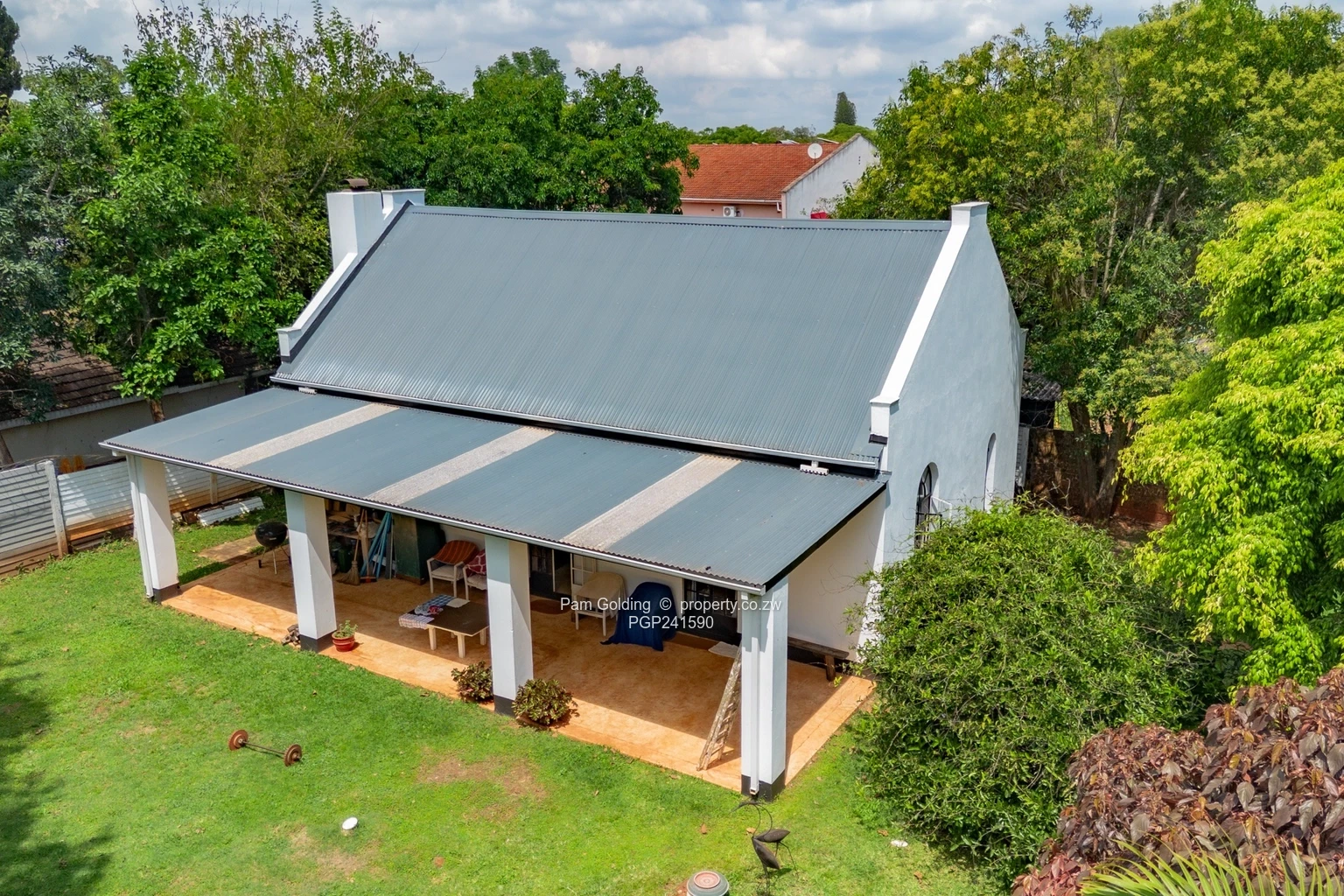 Furthermore the property has two domestic quarters, there are four rooms and a bathroom, a storeroom, a 5,000-litre water tank, a double carport, as well as a swimming pool and well established gardens.