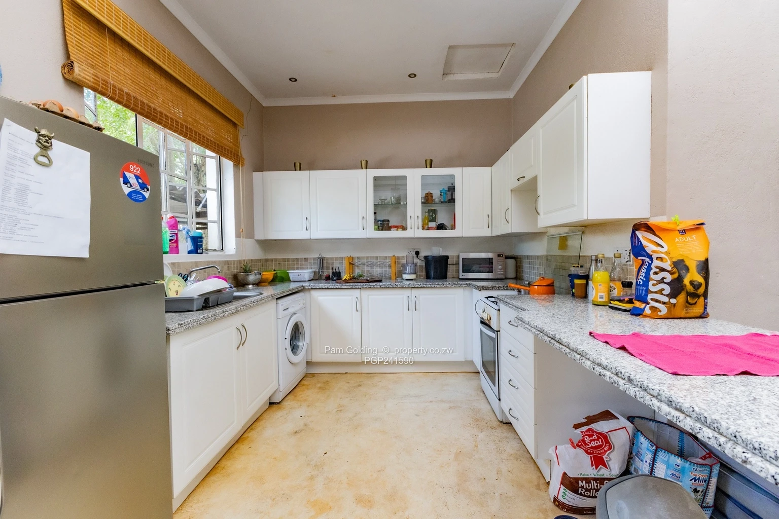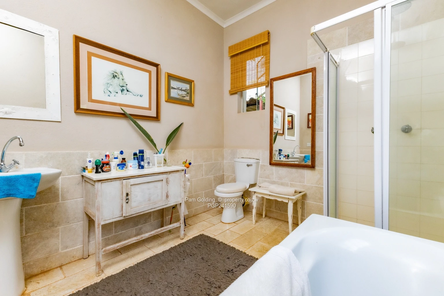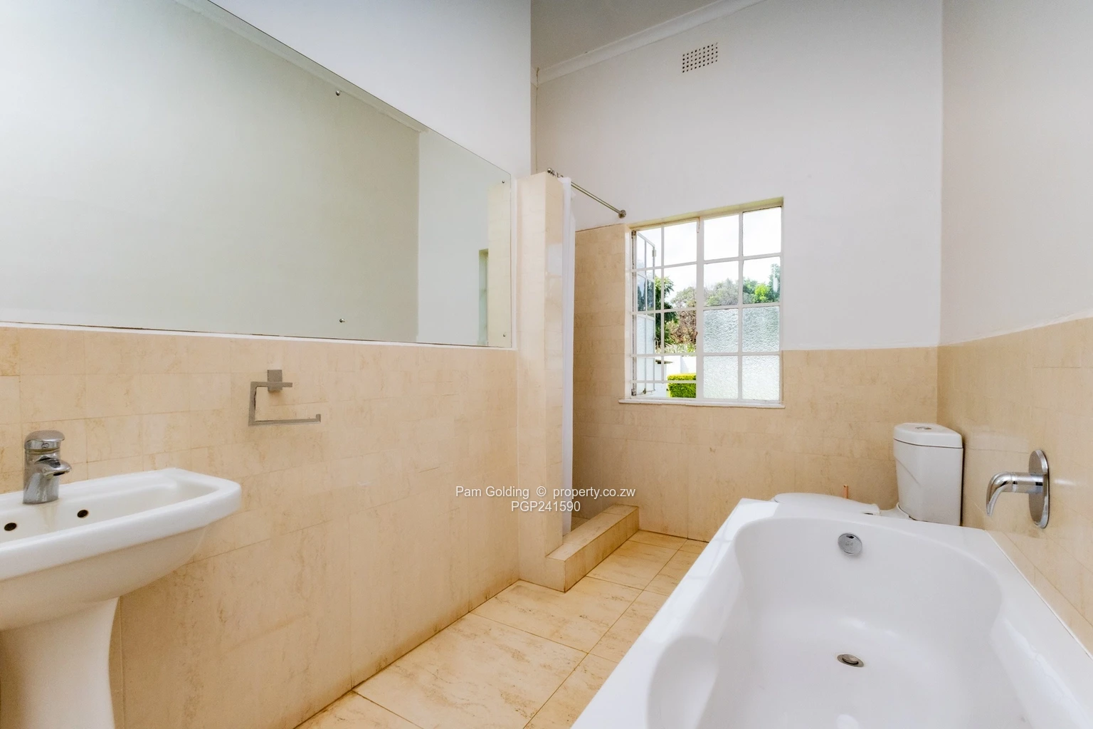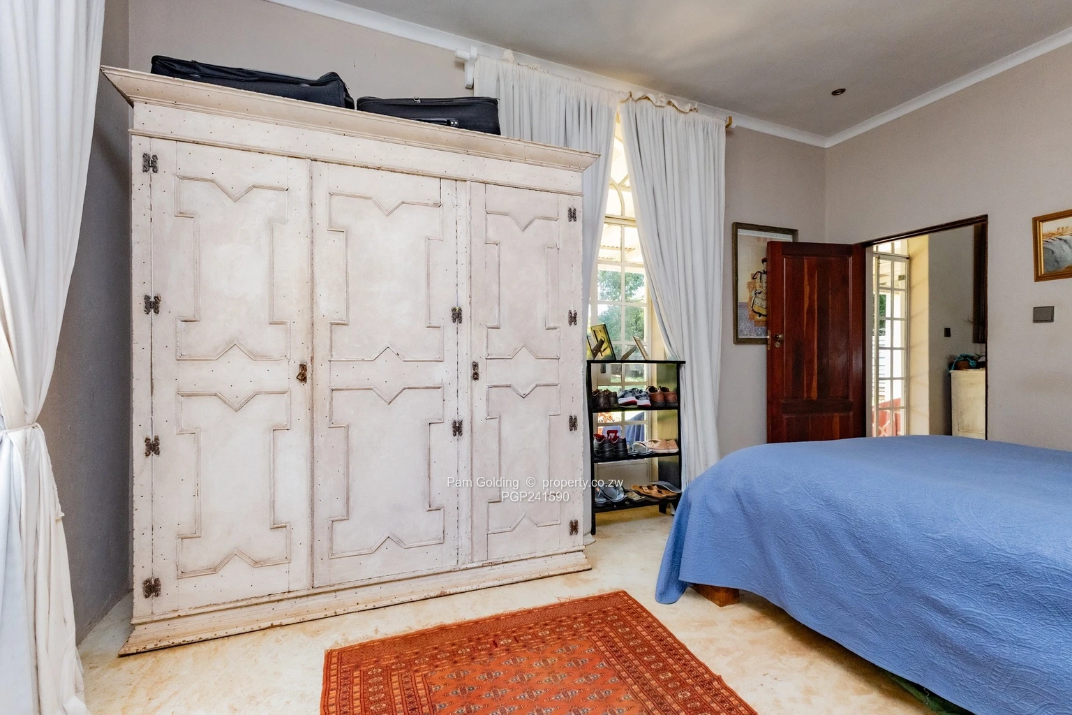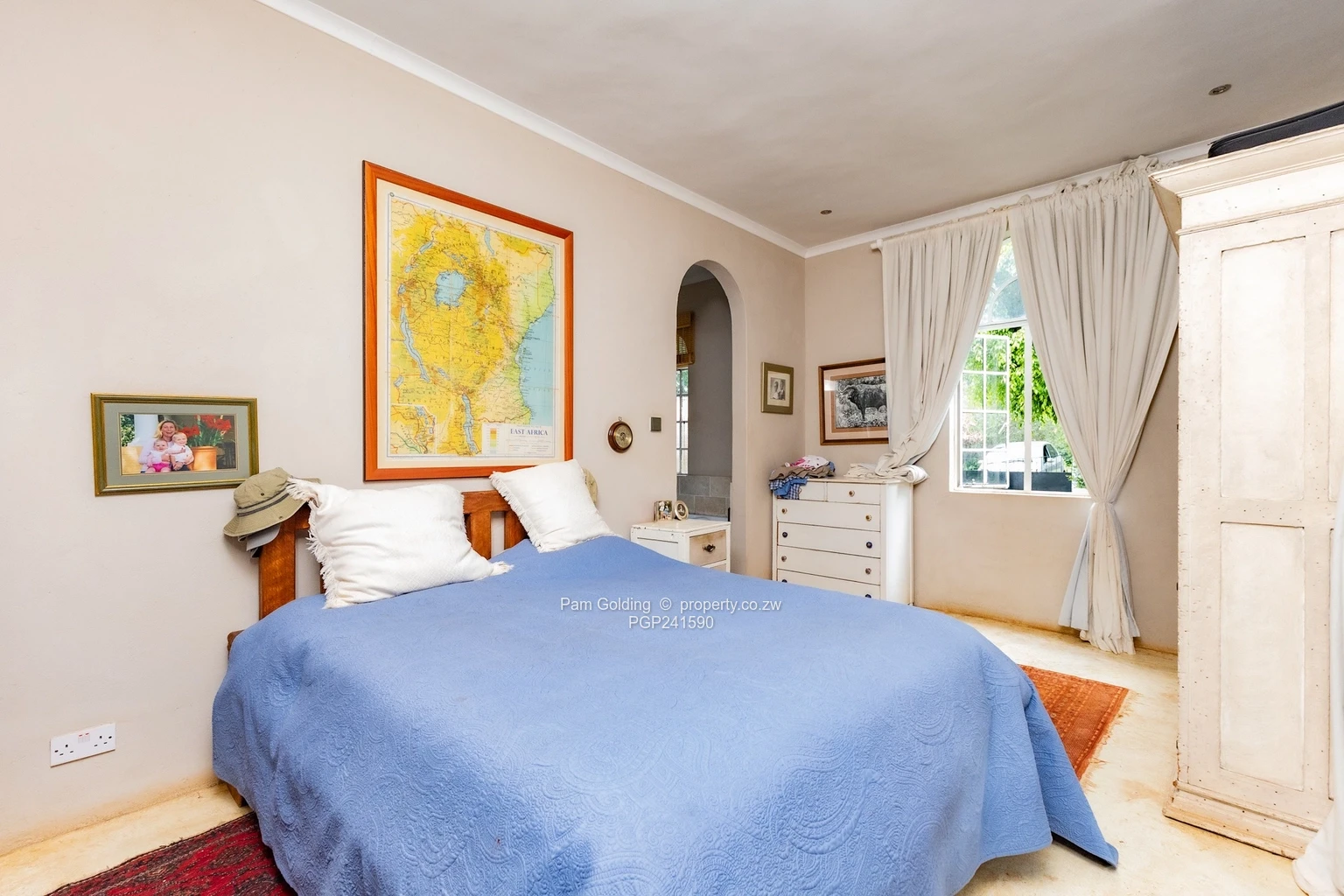 Furthermore the property has two domestic quarters, there are four rooms and a bathroom, a storeroom, a 5,000-litre water tank, a double carport, as well as a swimming pool and well established gardens.