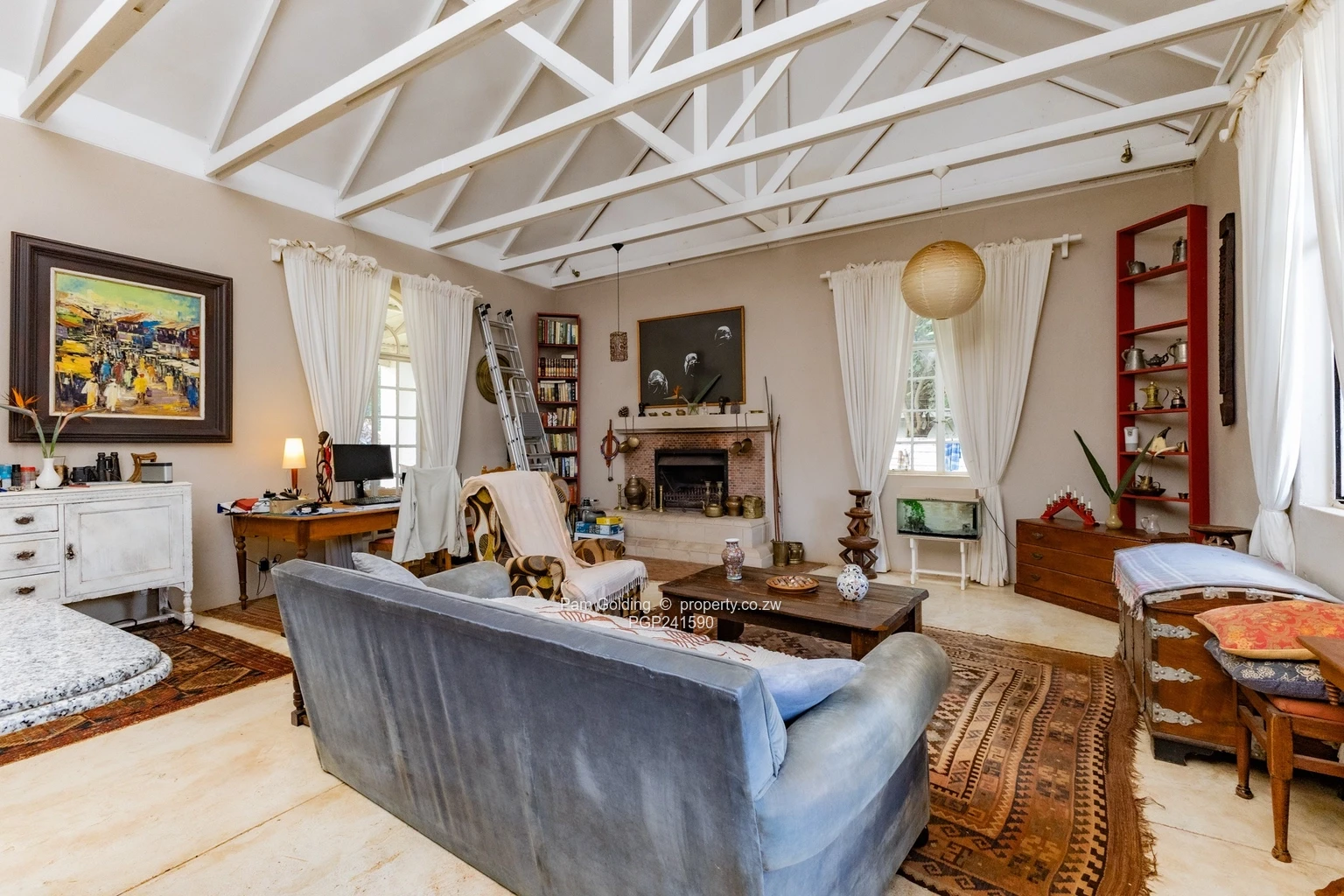 The main house consists of three bedrooms, with an additional bedroom in the attic, two bathrooms, a kitchen, dining room, lounge, studio, sunroom, and verandah. The layout allows for certain rooms to be adapted as private studies, meeting spaces, or quiet work areas, ideal for professionals operating from home.