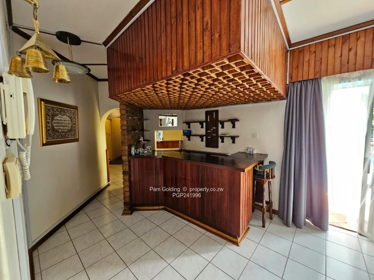 Step into this immaculate home nestled in the heart of Suburbs of Bulawayo, where modern elegance meets functionality. Surrounded by a beautifully landscaped garden, the outdoor space invites relaxation and social gatherings. The blue swimming pool, framed by a stone-paved terrace and safety fencing, offers the perfect retreat for warm days. A covered veranda opens up to the outdoor area, complete with a barbecue setup, perfect for alfresco dining.