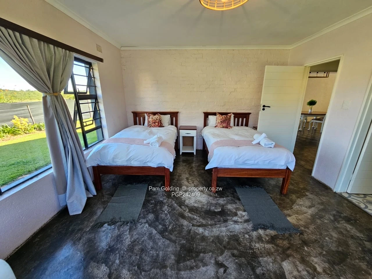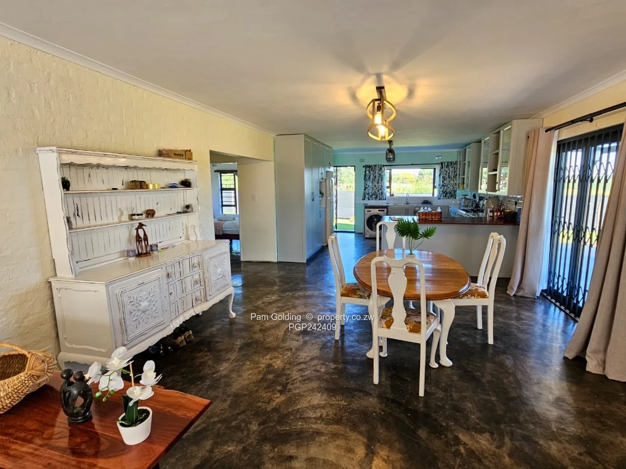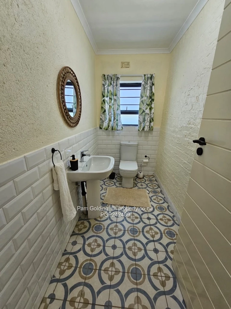 This spacious versatile property in Douglasdale, Bulawayo, presents an ideal haven with a beautiful single-story design. The charming exterior, complemented by a welcoming porch and lush green surroundings, invites relaxation and enjoyment of the outdoors.