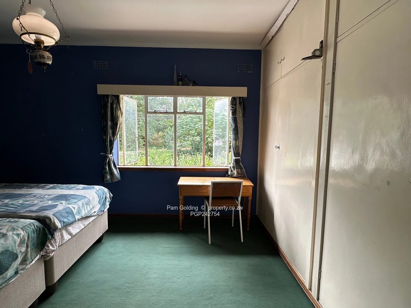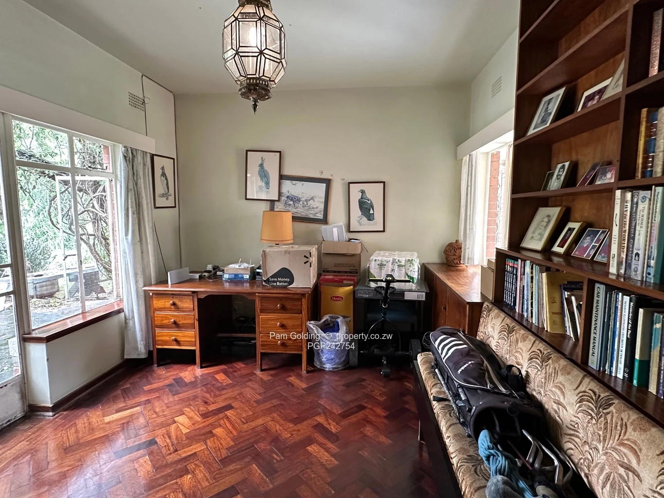 The home features four well-sized bedrooms and two bathrooms (main en-suite), inviting lounge with a fireplace and dining room creating a warm and welcoming living space, You will also find a guest toilet, office/study with shelving and the fitted kitchen, has an oven and hob and pantry, is practical and well laid out, catering to everyday family living. The glass-enclosed veranda overlooks the swimming pool and garden offering a bright and versatile area perfect for entertaining or enjoying the scenic surroundings throughout the year. The floors are a combination of parquet, carpet and tiles.
