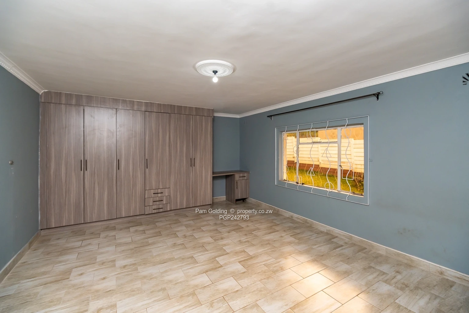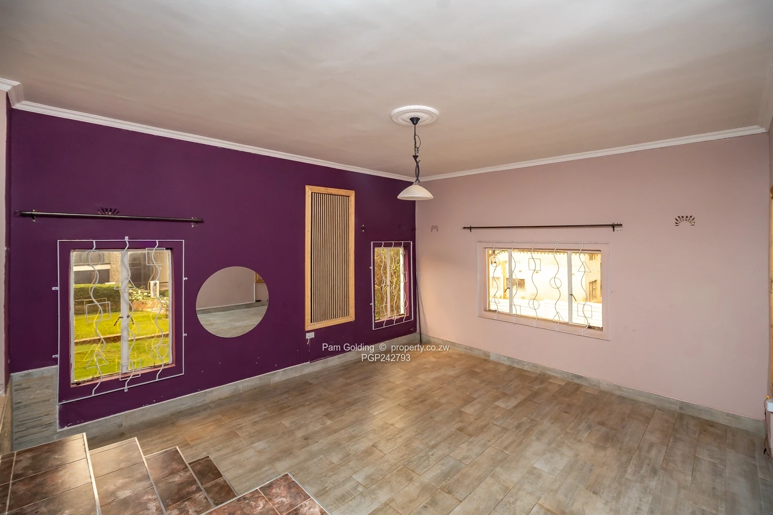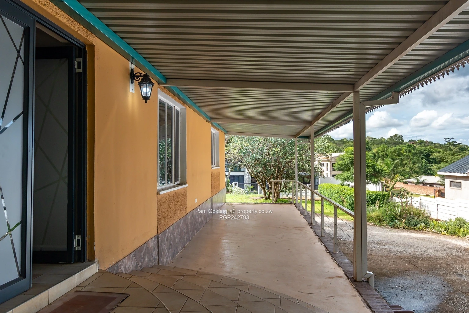 The property is fully walled with a neat front lawn and mature trees visible in the aerial shot, a long driveway and clear boundaries for privacy. A covered verandah and established garden provide excellent outdoor entertaining space, while the fitted kitchen gives practical everyday convenience. Additional highlights include 24-hour security and access control for peace of mind, a water tank on site and generous parking. Ideal for families or investors seeking a peaceful Harare North address with renovation potential and strong curb appeal. Schedule a viewing today.