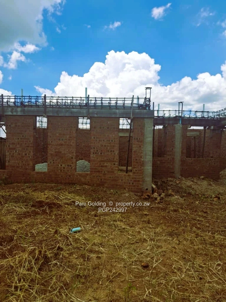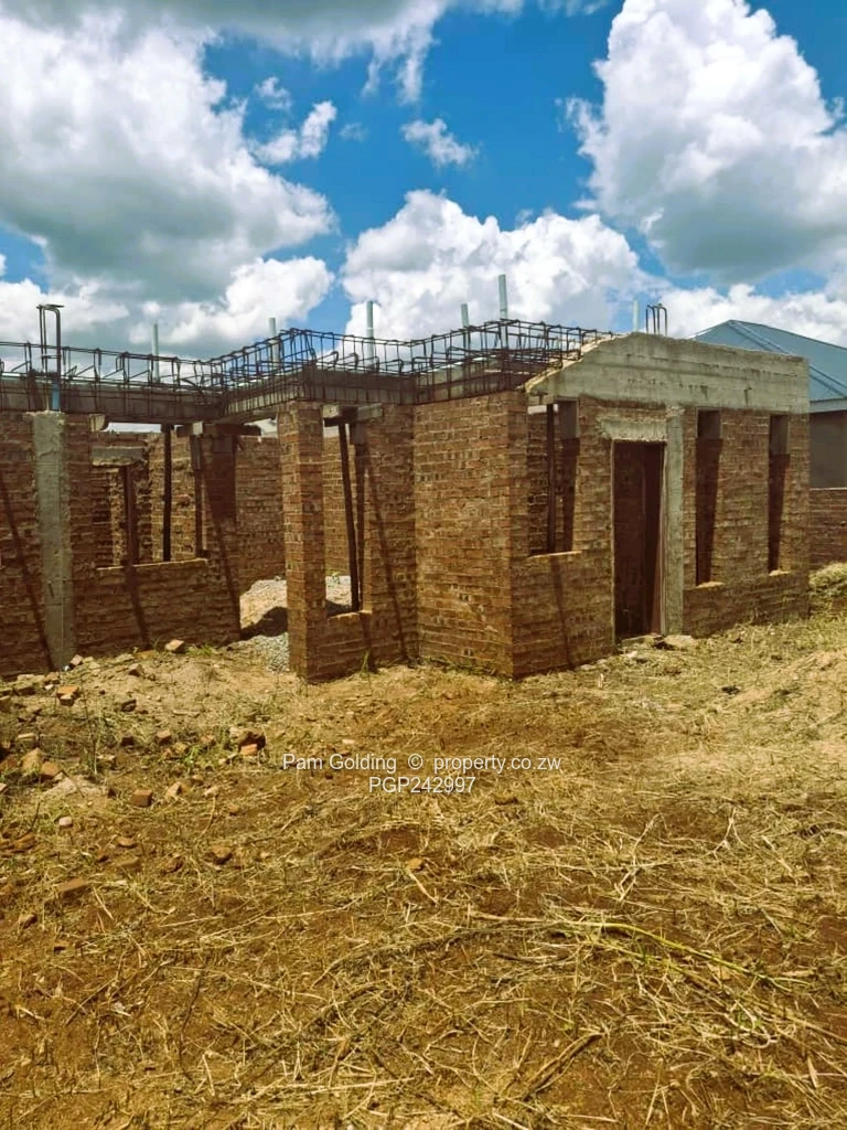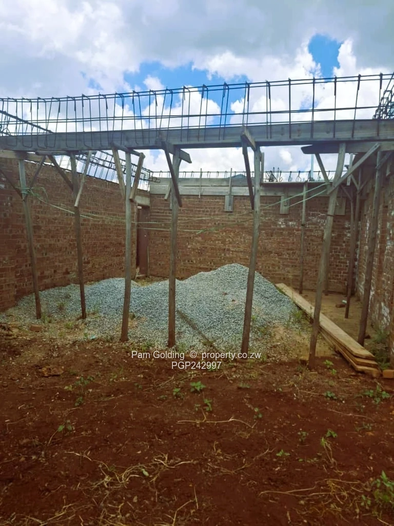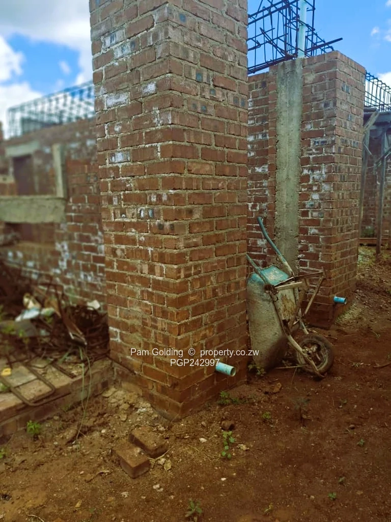 Introducing this partially built stand in Nyeredzi Ridge Pomona, close to the famous Pomona City estate. The stand measures 575 square metres, and the structure is on wall plate level with 3 bedrooms (all en-suite), a double lock-up garage, open plan lounge and kitchen. The area is fully serviced with tarred roads, water and electricity. The property has compliance and is ready for title deeds