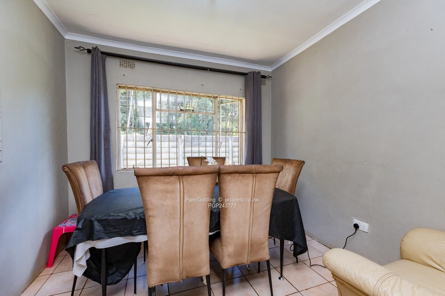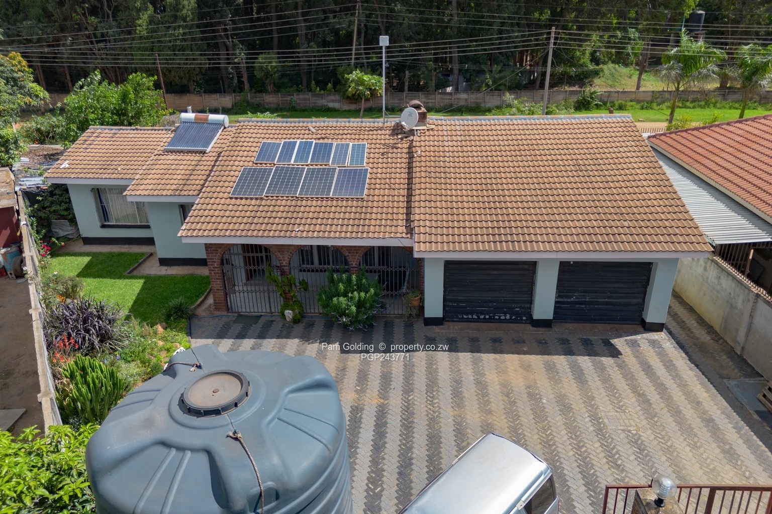 Well-equipped for Zimbabwe’s infrastructure realities with a good borehole at 60 metres, 5,000-litre water tank, and a 2KVA inverter solar system. A double garage completes the package.