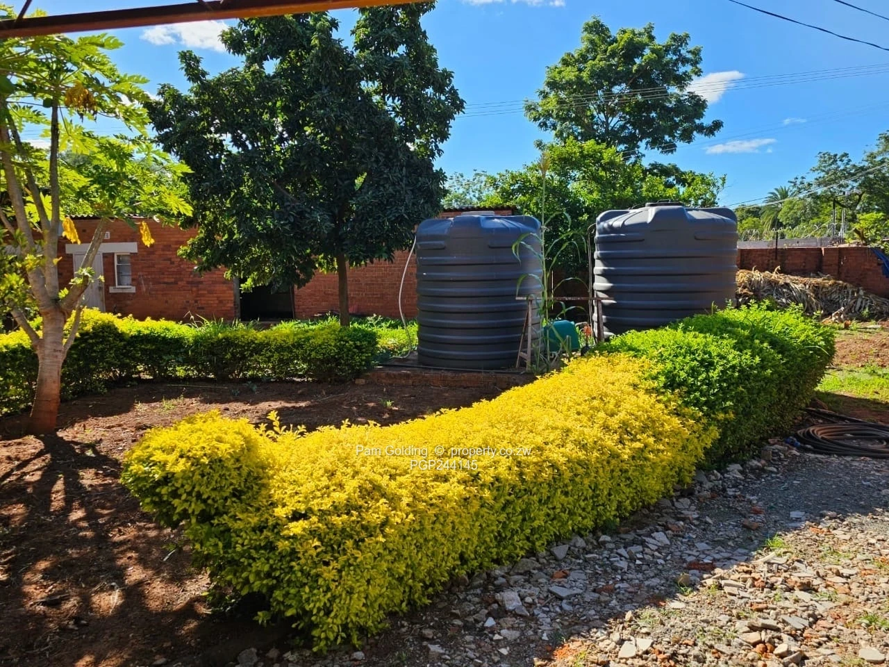 - Reliable water supply with a prolific borehole and two water tanks.