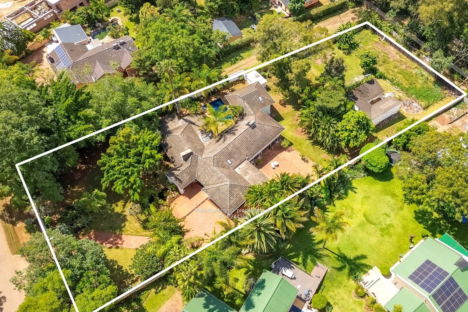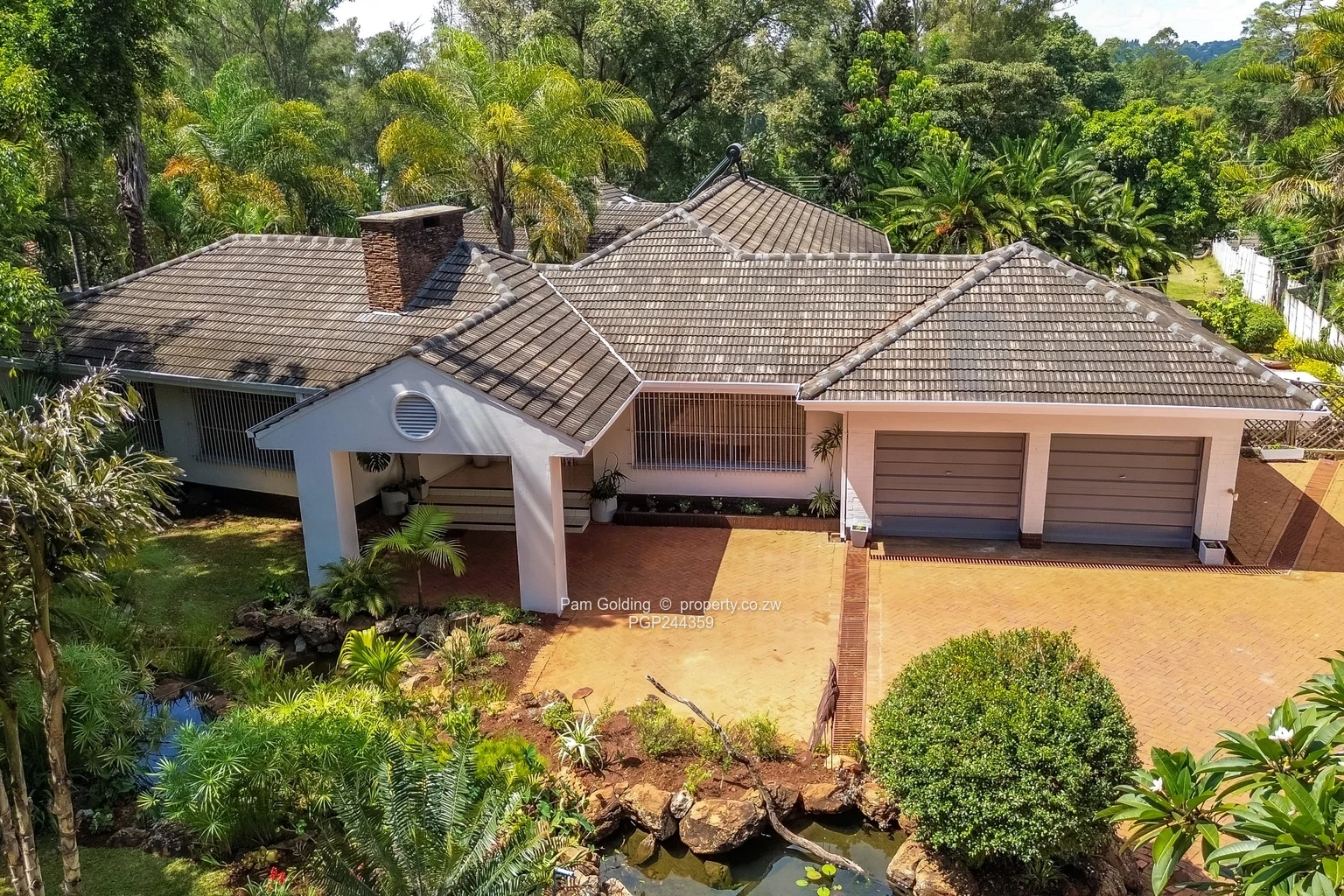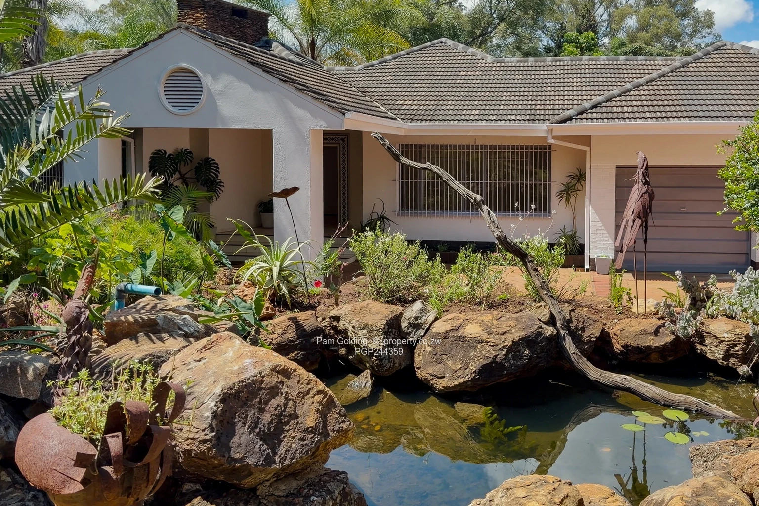 Outdoors, the property continues to impress with a spacious front yard and backyard set within an established garden, complete with charming ponds that enhance its tranquil atmosphere. Additional features include staff quarters, double lock up garage, an outside storeroom, and extra accommodation with its own en suite