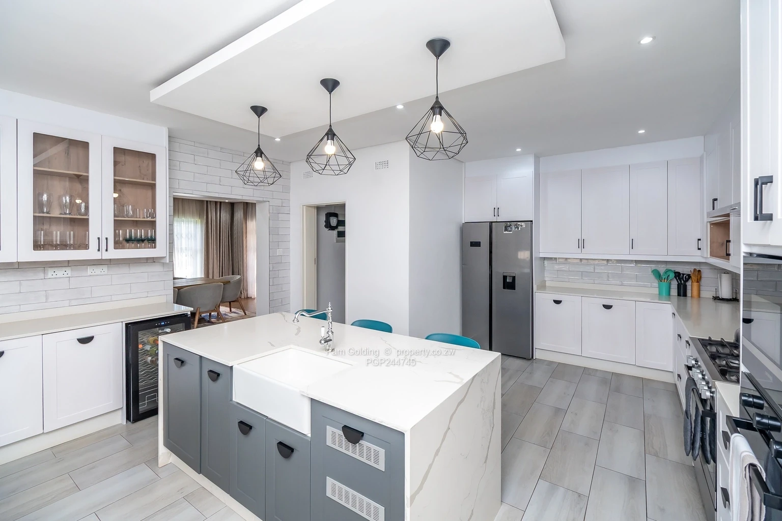 - Modern kitchen with Caesar tops, 6-plate gas cooker, walk-in pantry, and separate scullery