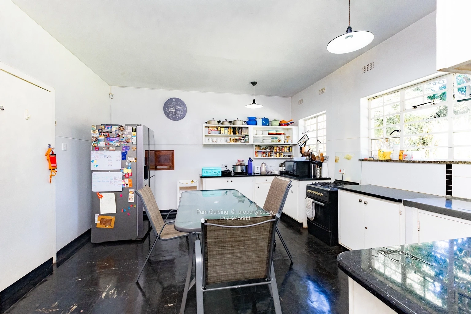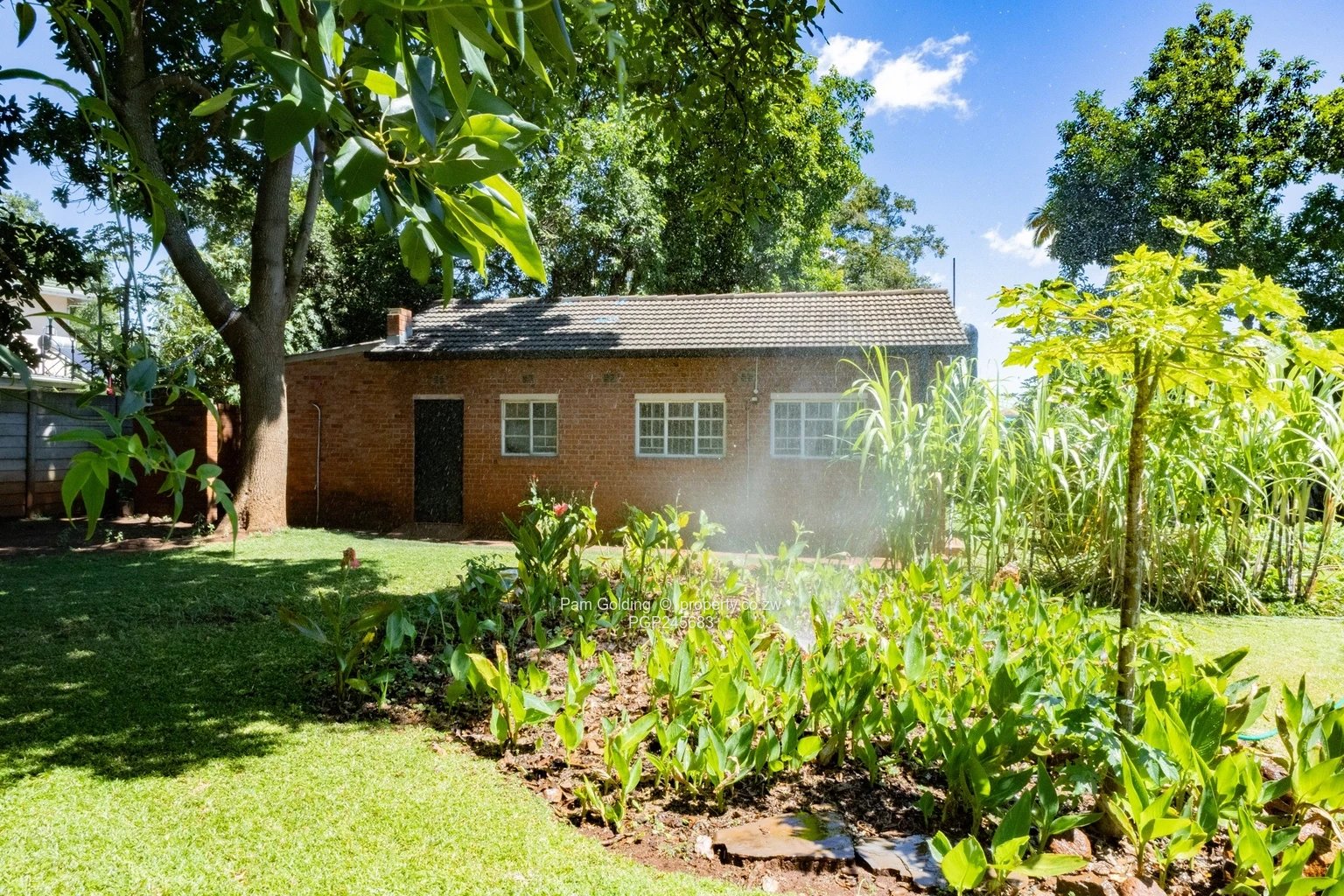 Outdoors, the property continues to impress with a large swimming pool, ideal for entertaining or cooling off on warm days. Additional features include a reliable borehole, an 8 KVA solar system for energy efficiency, a double drive-through lock-up garage, two staff quarters, and a generous storeroom.