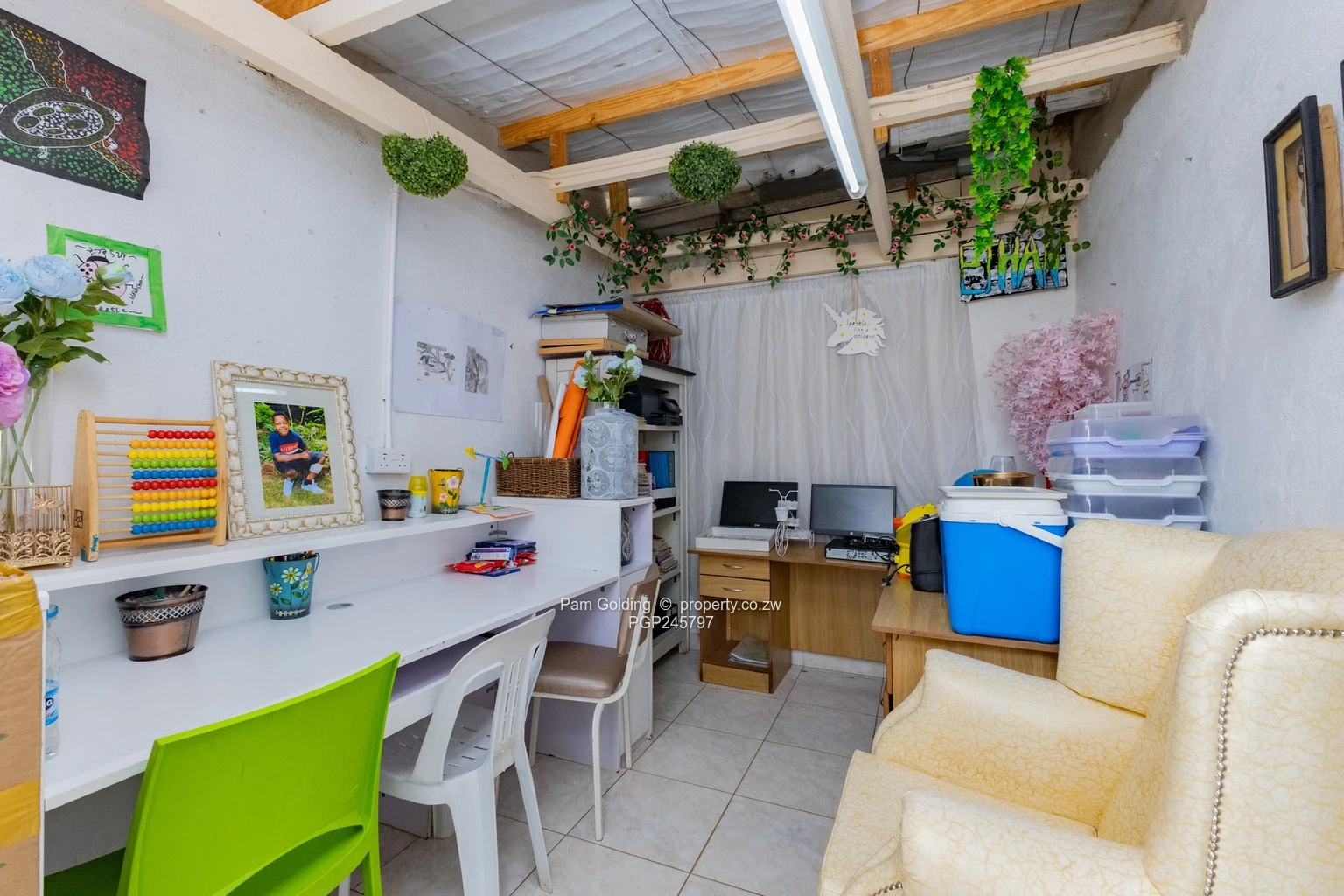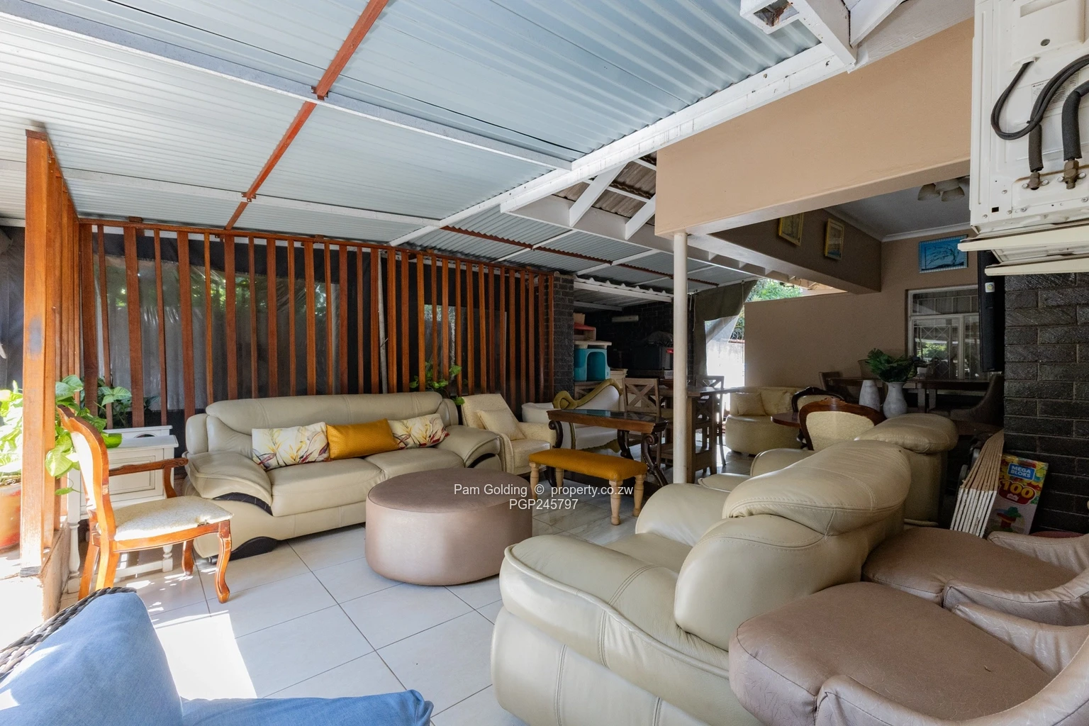 Designed with convenience and sustainability in mind, the property is equipped with a reliable borehole, two 5,000-litre water tanks, a 5kVA solar system with 12 panels, two solar geysers, and a diesel generatorensuring consistent water and power supply. Additional amenities include a swimming pool with a storage shed, as well as a fully equipped utility cottage featuring a bedroom and bathroom.