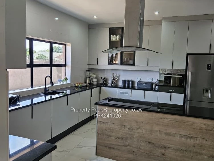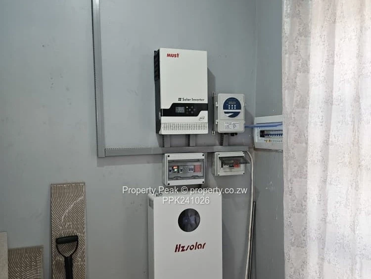 Comprising of 4 bedrooms 2 ensuites, 2 lounges, modern fitted kitchen, scullery, pantry, office, guest toilet, double lock up garage, borehole, 5000 litre water tank on a stand,5KVA Solar system, solar room, outside room with toilet, paved and landscaped, walled and gated. Title deeds