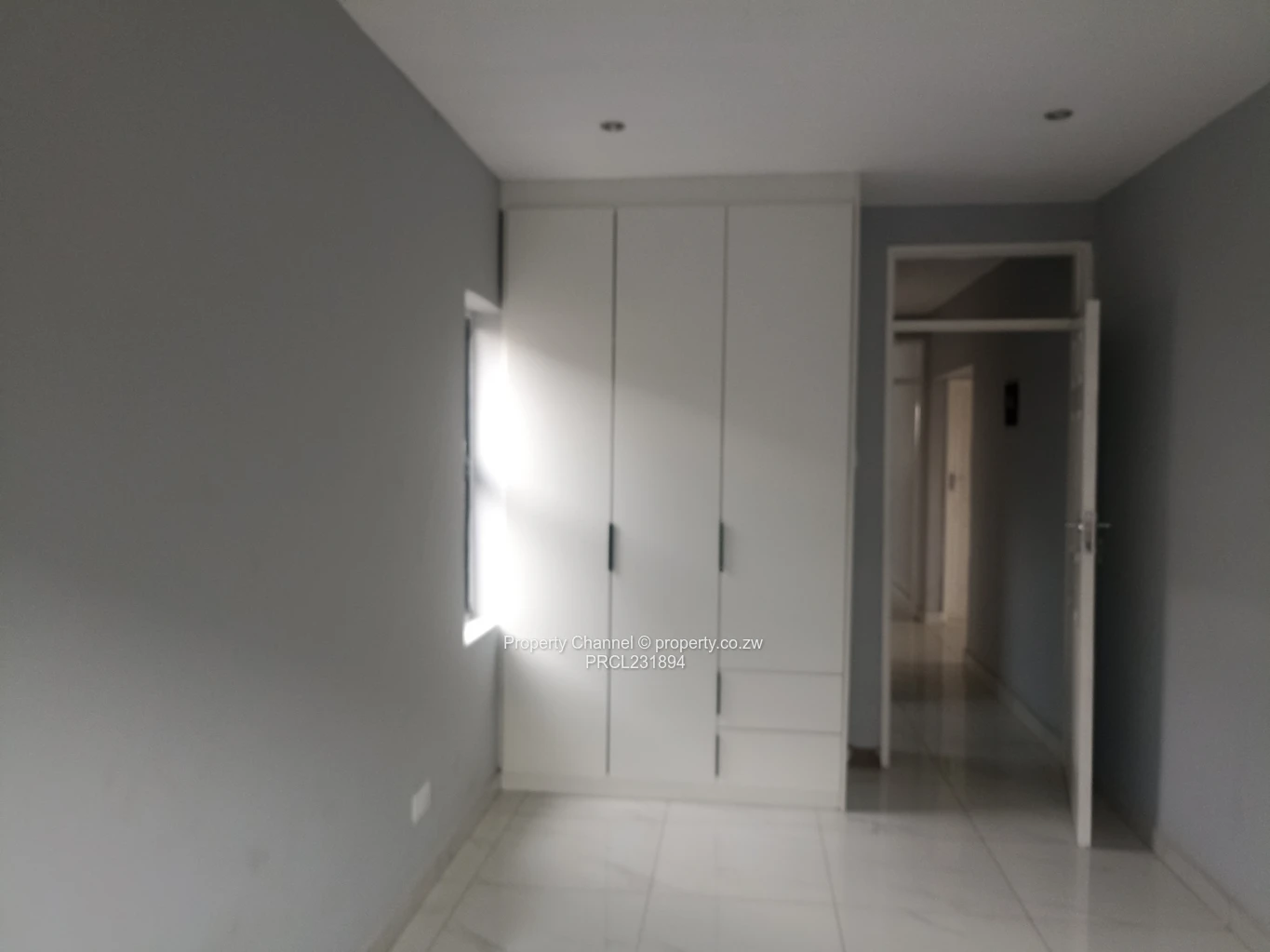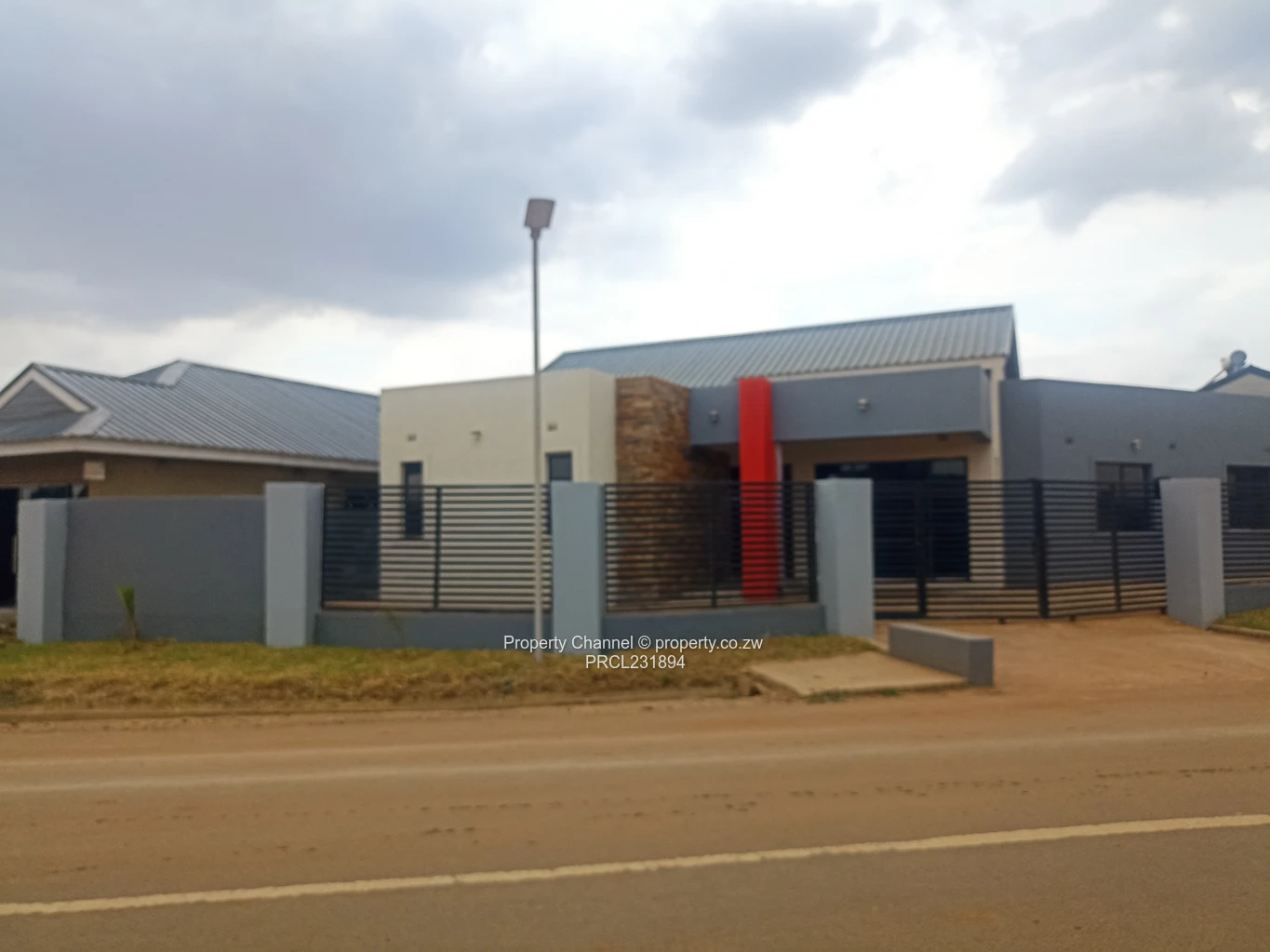 Welcome to this charming 3-bedroom house located in the desirable Rainham area of Harare. The exterior presents a modern aesthetic, highlighted by a striking red accent wall and sleek metal fencing, ensuring both security and style. A paved walkway invites you to the entrance, while minimalist landscaping adds a touch of nature.