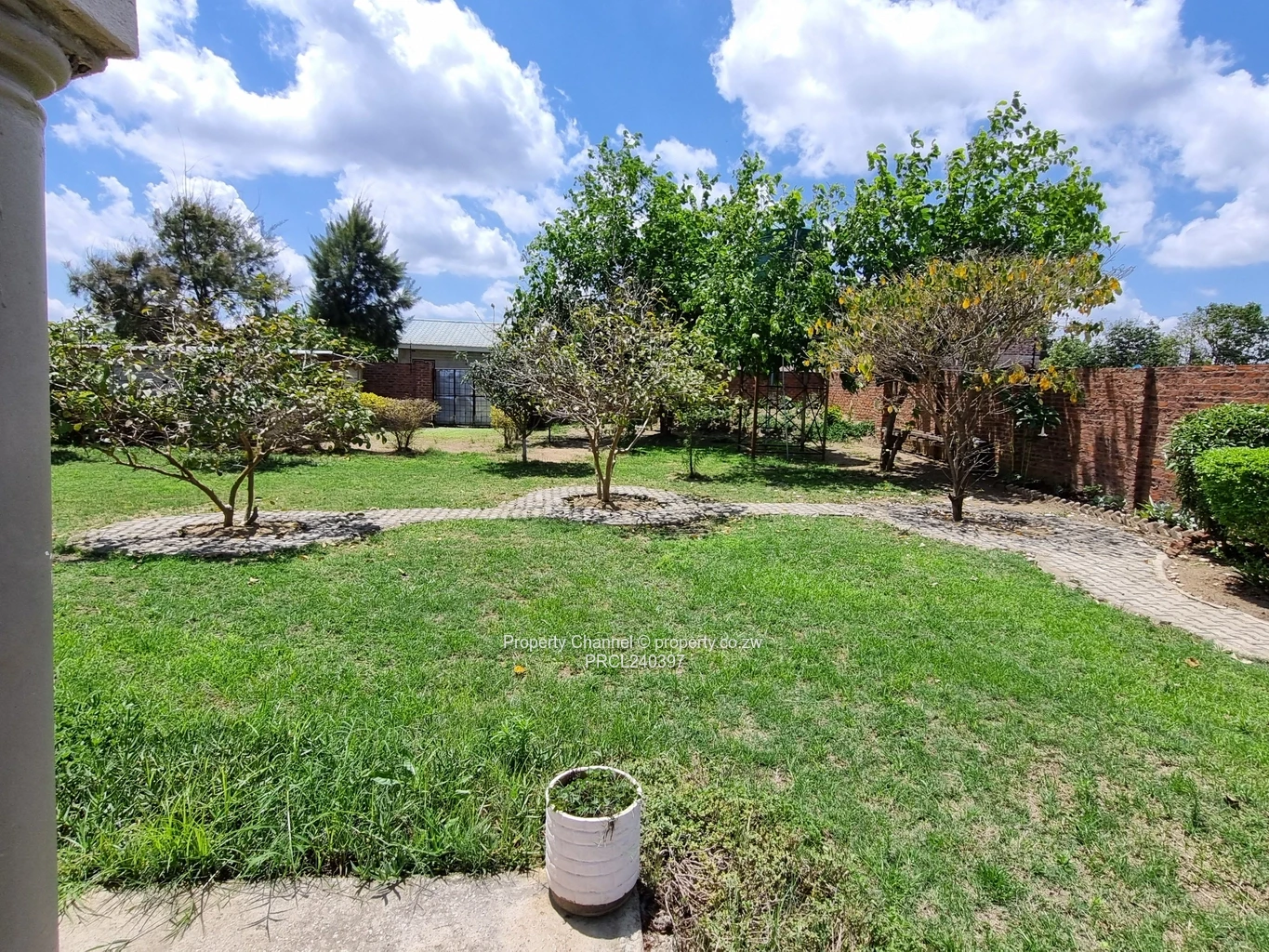 The home sits in a beautifully landscaped garden with manicured lawns, mature trees, and paved walkways — offering a serene environment perfect for family living and entertaining. The paved driveway and secure perimeter provide both practicality and peace of mind.