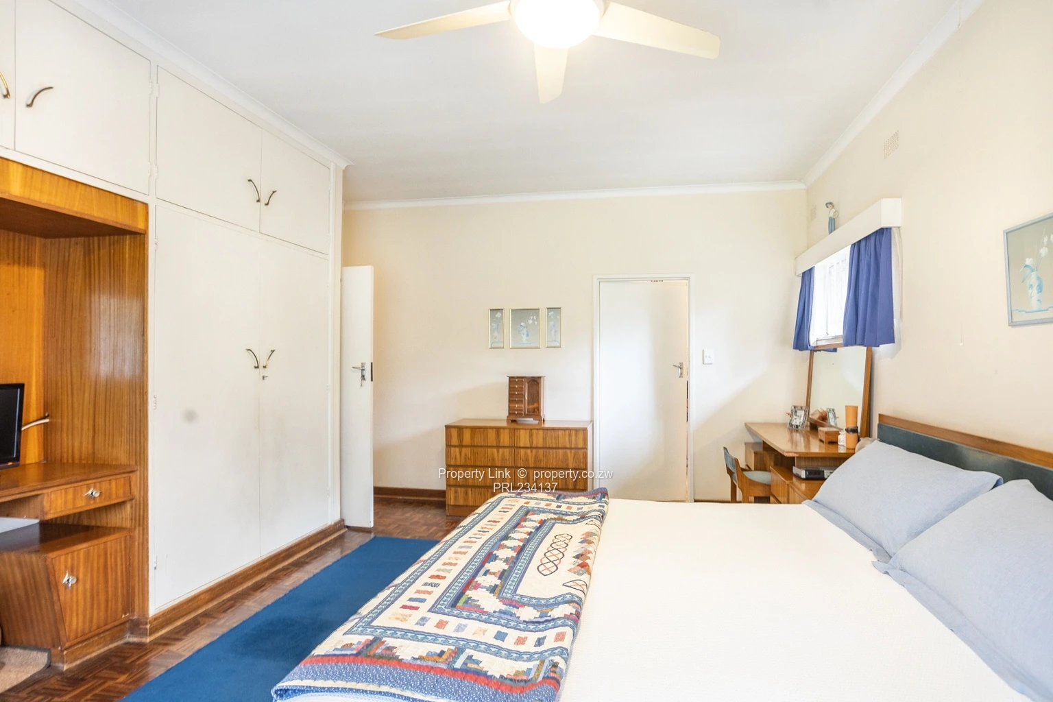 The home boasts four well-sized bedrooms, each with built-in cupboards. The master bedroom includes a ceiling fan and a private ensuite bathroom. In addition, there is a second, shared bathroom and a separate guest toilet.