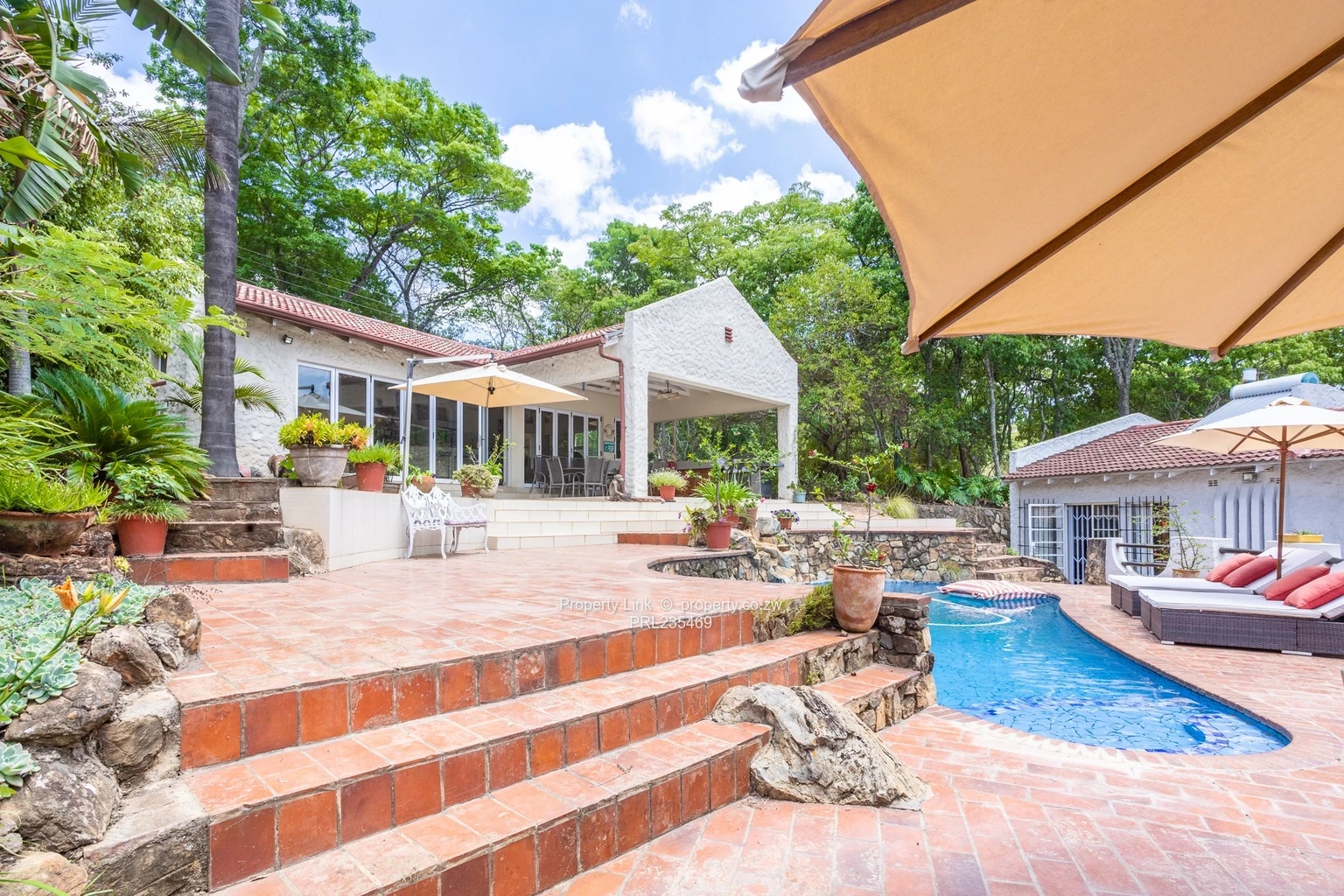 The outdoor entertainment area is a standout, boasting a sparkling swimming pool and a separate entertainment area equipped with a bar, games area, shower, and toilet.