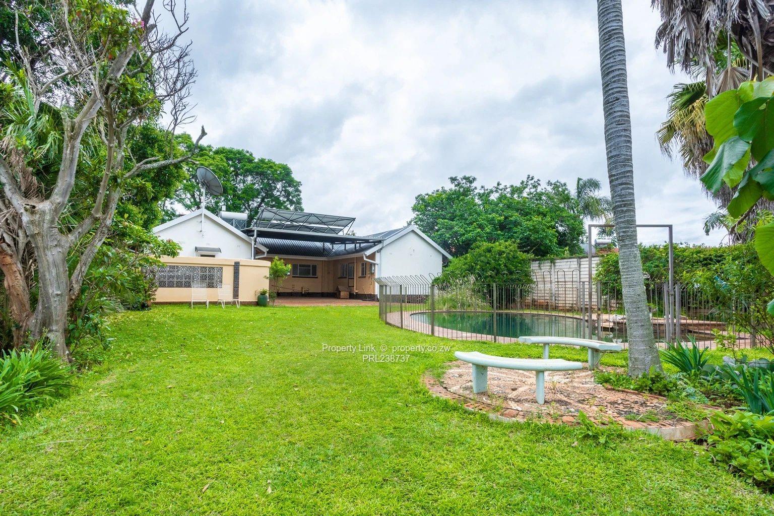 Step outside to enjoy your private backyard oasis with a covered entertainment area overlooking the fenced swimming pool surrounded by well-manicured lawns and tropical trees The property perimeter is securely walled, with an electric gate and the house has an alarm system for peace of mind.