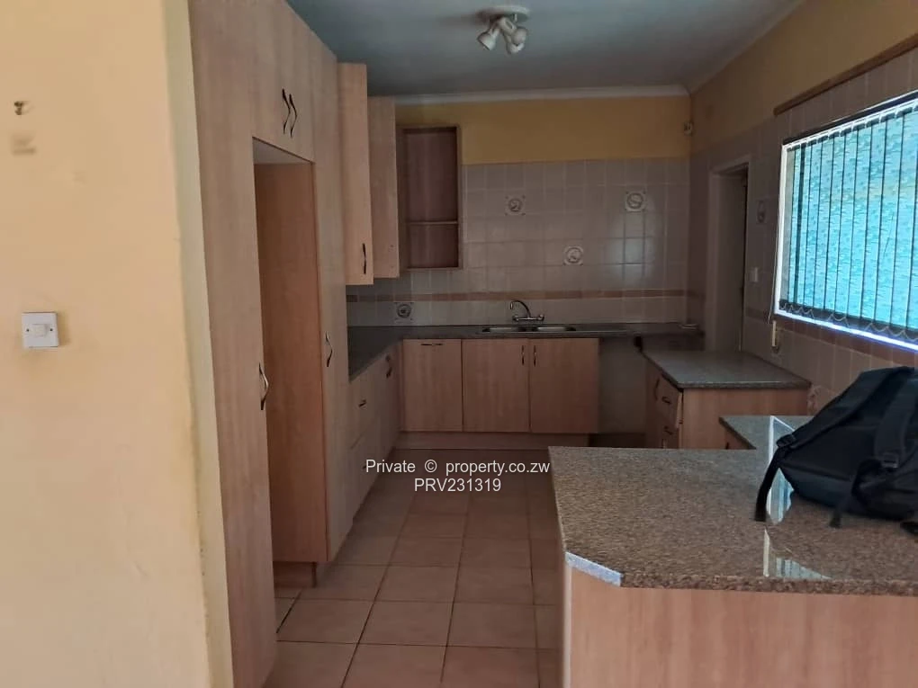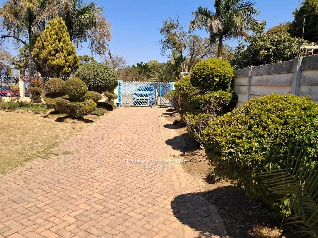 Charming 3-bedroom family home in the heart of Eastlea, Harare East — set on a generous 1,250 m² stand with a solid 400 m² of built space. The property greets you with a wide, brick-paved driveway flanked by expertly clipped topiary and mature palms, leading to a secure blue gate and a large paved courtyard with covered carport (blue shade canopy) offering ample parking. The yellow-painted single-storey house features security-bared windows and neat external finishes. Inside, a practical tiled kitchen boasts light wood cabinetry and granite countertops, plenty of storage and workspace. A reliable borehole provides independent water supply, ideal for peace of mind and garden irrigation. Spacious grounds offer room for extension, a swimming pool or a lush garden. Perfect for families or someone wanting a well-located Eastlea home with excellent development potential. Call today to arrange a viewing.