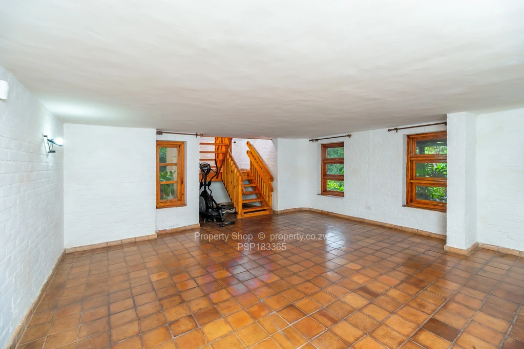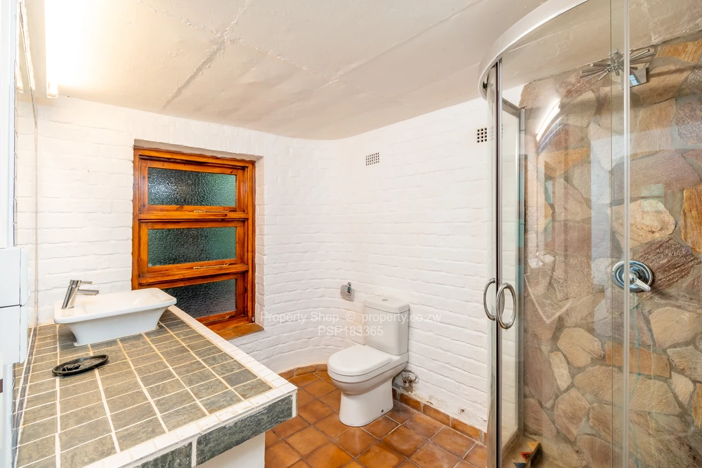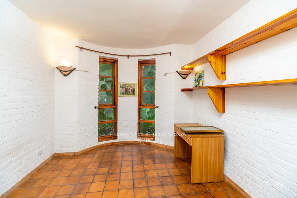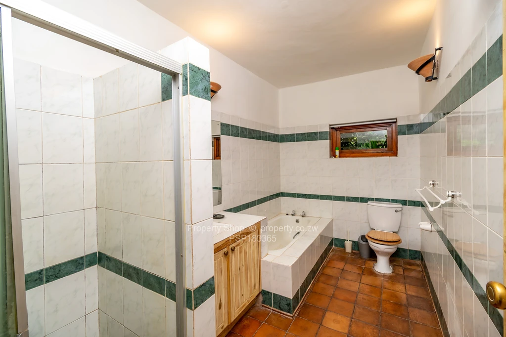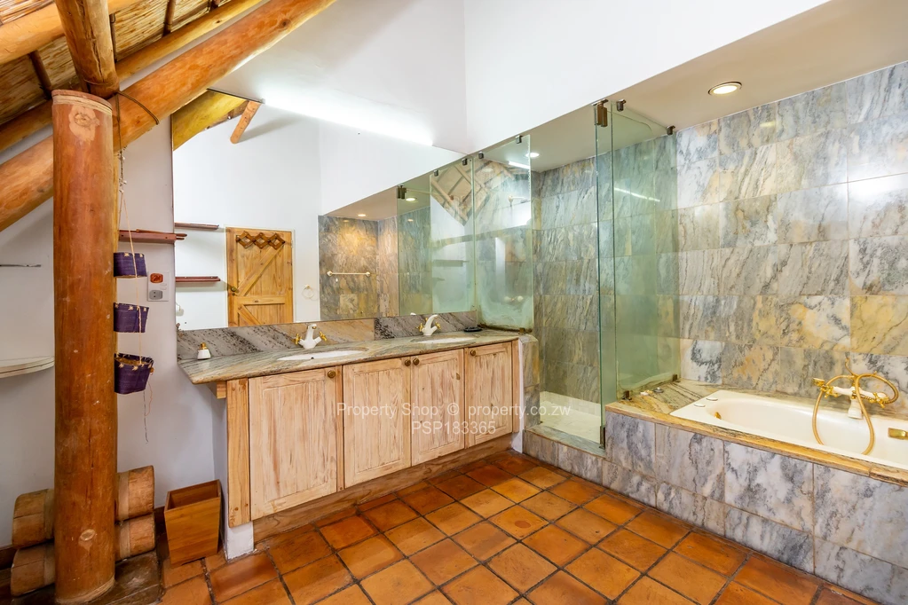 Sitting on 15acres of trees and mature garden is this stunning estate, with a beautiful 4 bedroomed split level thatch house. The house consist of 2 bedrooms with shared bathroom on the ground floor, open plan dining room ,tv room, kitchen and master bedroom are also situated on the top floor. Lower level, is a spacious entertainment area with a large balcony overlooking the garden and glitter stone swimming pool. This gem also offers a separate 1 bed flatlet in the basement with own private entrance and drive way.