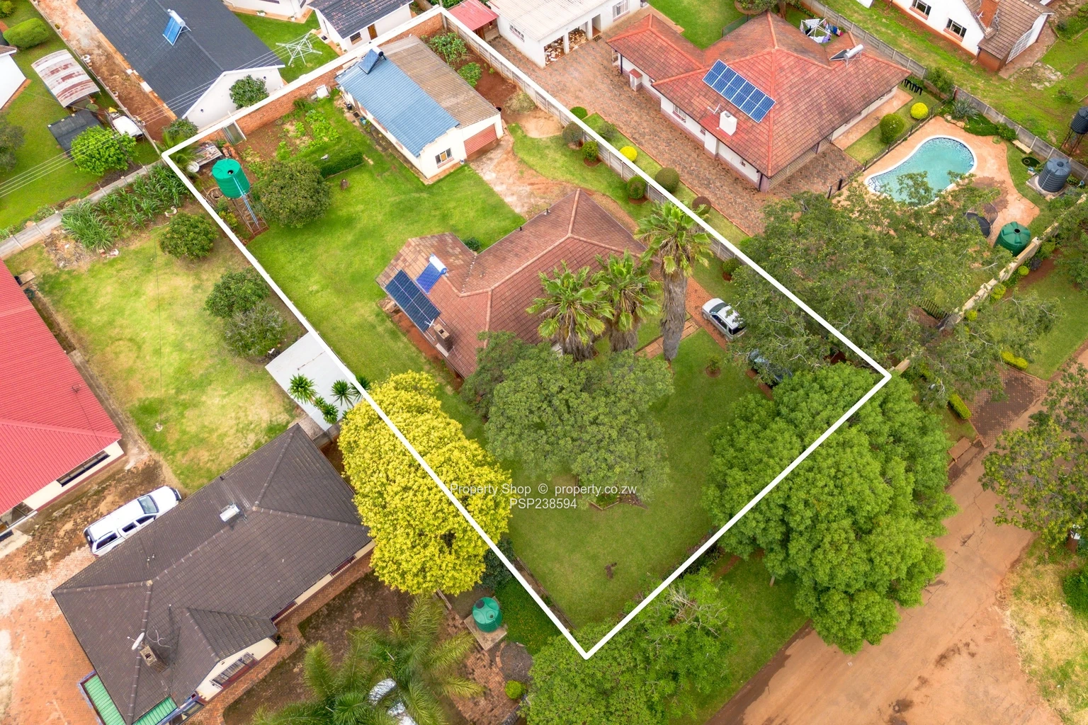 Outdoors, you'll find a beautifully landscaped garden, perfect for enjoying the sunny Harare climate. The property is securely walled and fenced, providing peace of mind. A charming cottage adds versatility, making it ideal for guests or rental potential. Other noteworthy features include a solar system and geyser, borehole for water supply, and a convenient garage.