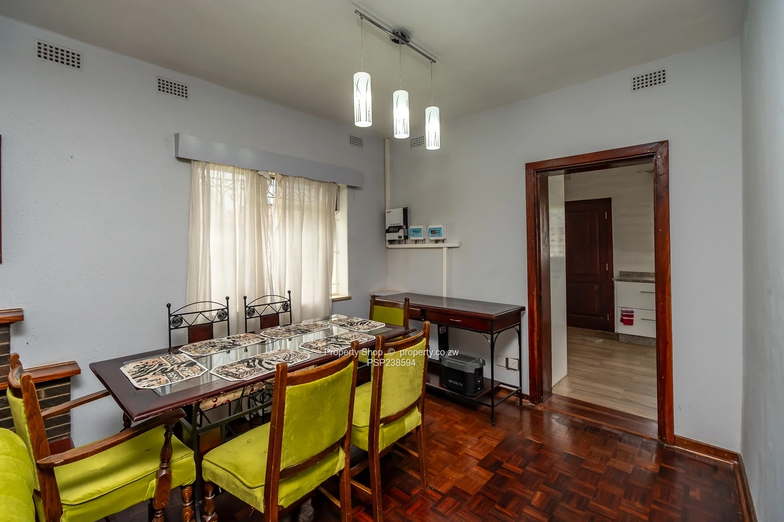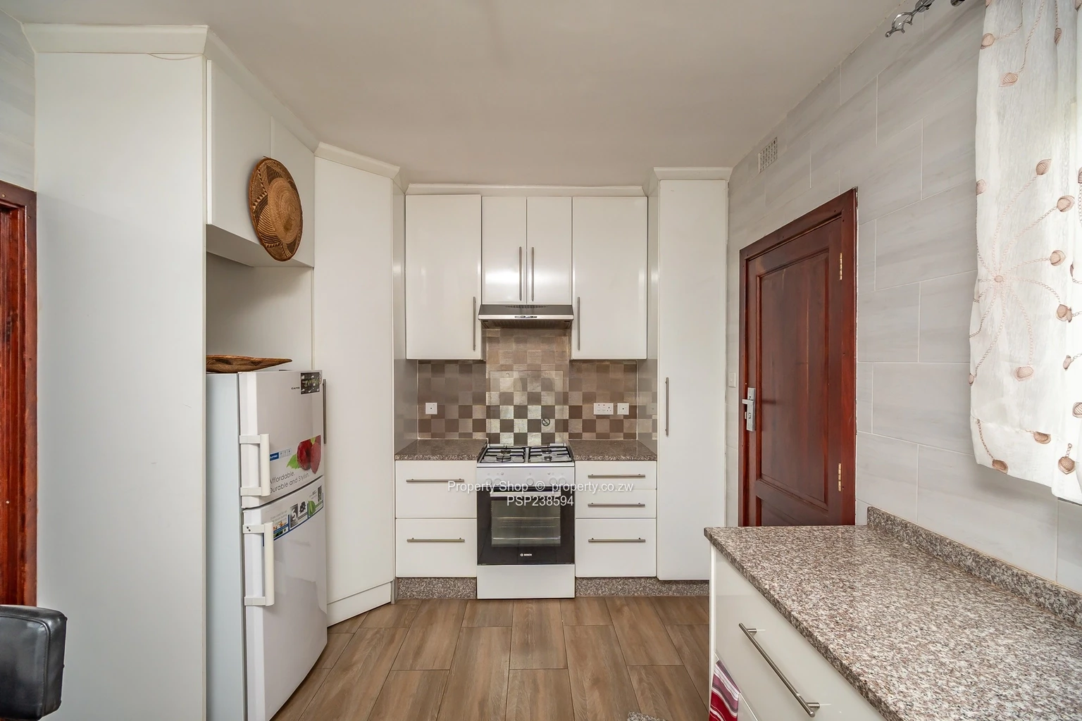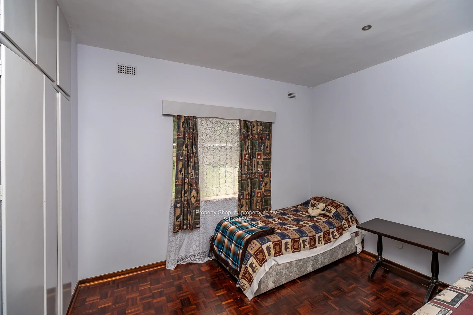 The fitted kitchen stuns with modern conveniences, and the stylish parquet and tiled flooring add a touch of elegance throughout. With built-in cupboards for extra storage, the home caters to all your needs.
