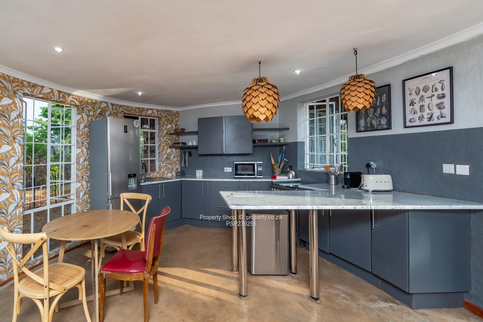 Gourmet Kitchen: A delightful blend of modern and classic design, featuring a marble top island and a spacious scullery, ideal for hosting gatherings.