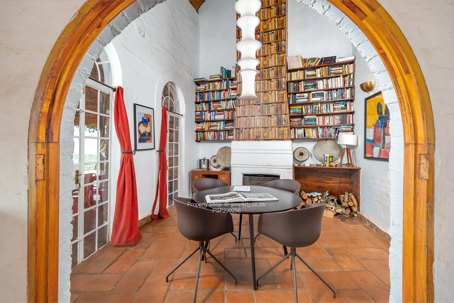 Entertainment Spaces: Enjoy the cozy TV room and bar, a classic library with a fireplace and floor-to-ceiling bookshelves, and a dining room with a rainforest theme, complete with a large fireplace and a 10-seater teak dining table.