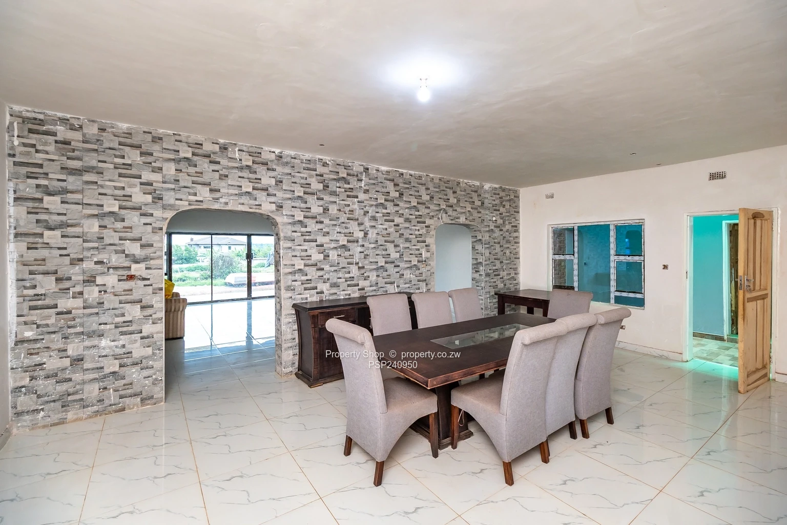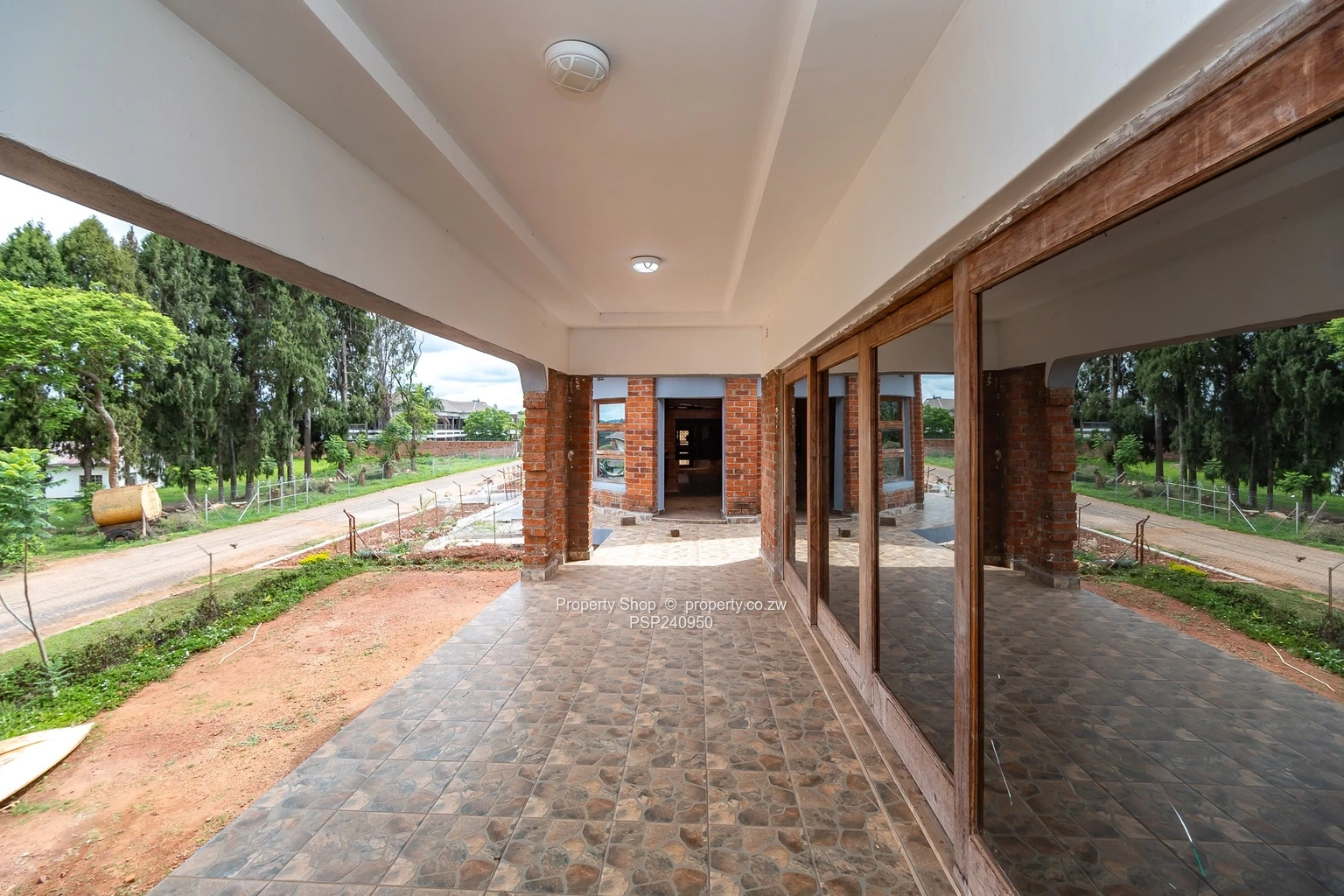 Nestled in the serene suburb of The Grange, Harare, this impressive mansion is 90 per cent complete and desiring a home owner who will finish to their magnificent taste. The architectural design features a striking combination of exposed red brick and light gray plaster, complemented by large, multi-paned windows that invite abundant natural light.