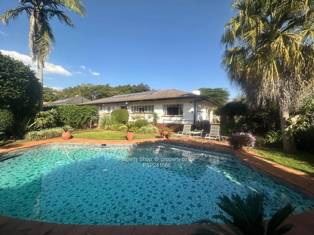 The open patio overlooking the beautifully landscaped garden invites relaxation and entertainment. The property's exterior boasts a sparkling swimming pool with chip tile surrounds, staff quarters, and a double carport. With two boreholes for a reliable water supply and alarms with exterior beams and sensors for added security, this home is perfect for families or investors. Priced at $320,000, it's a rare find in the desirable Emerald Hill area.