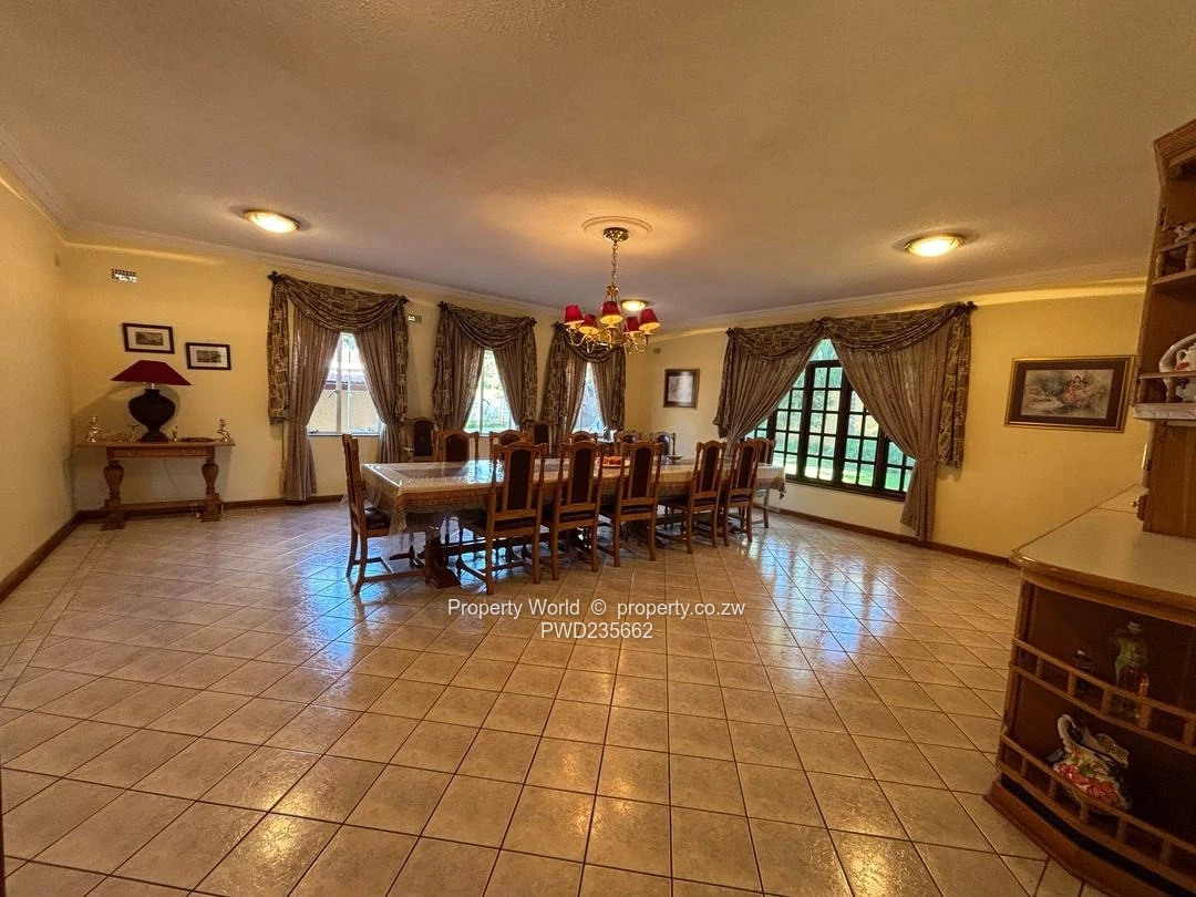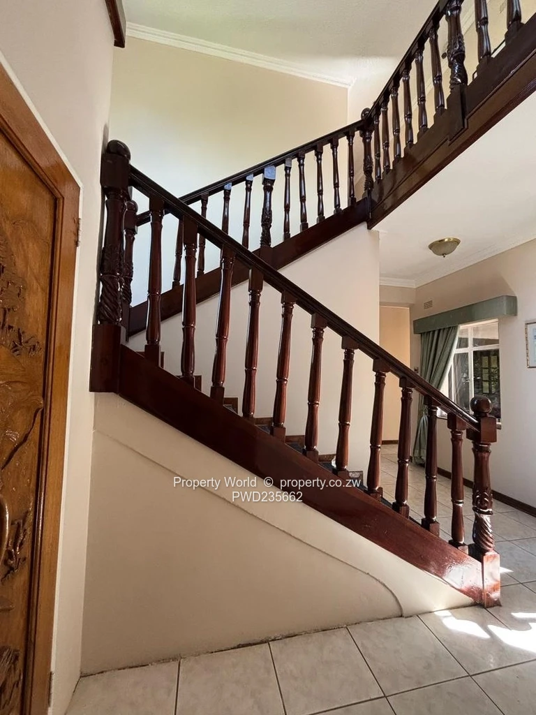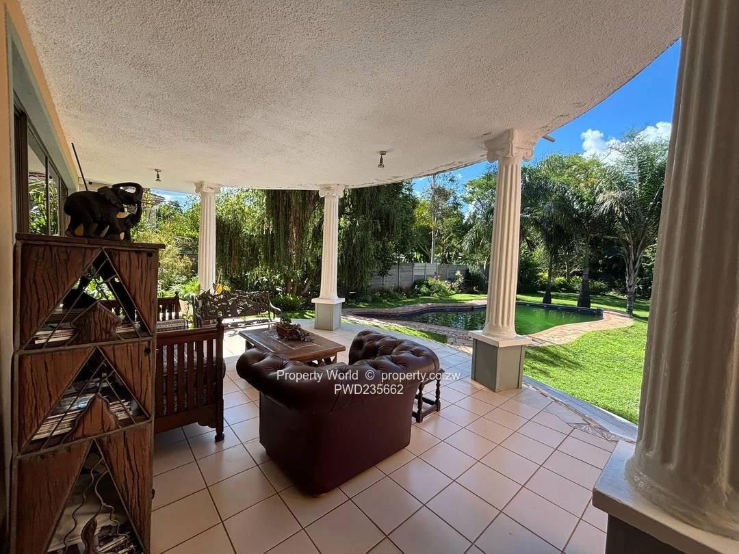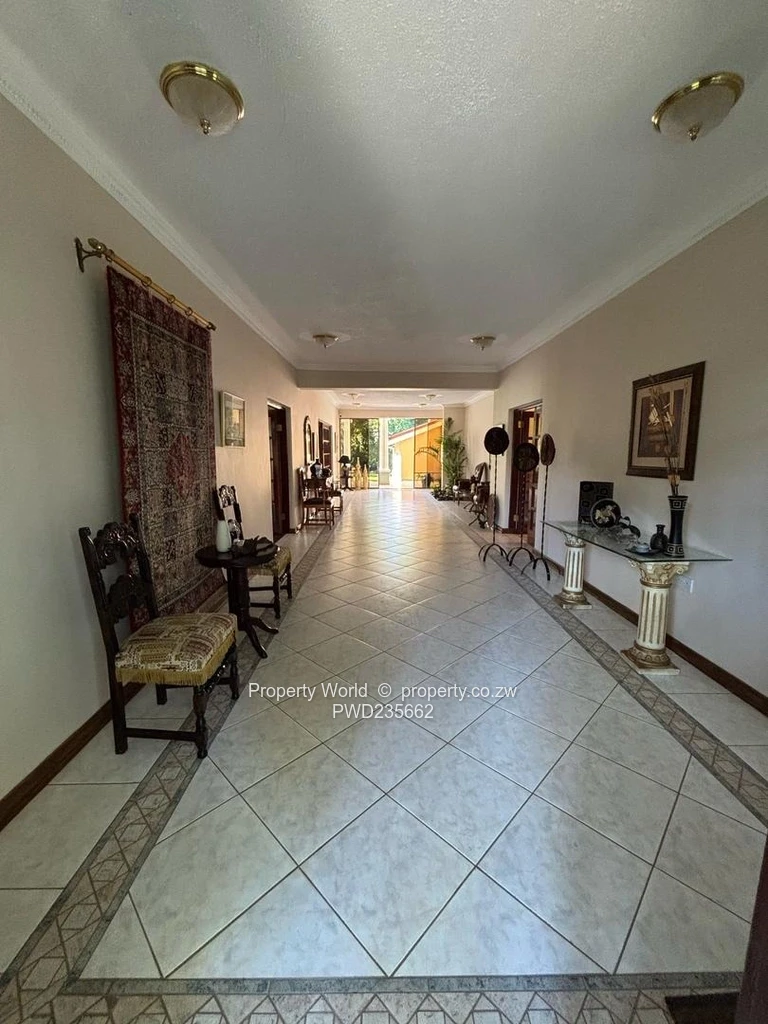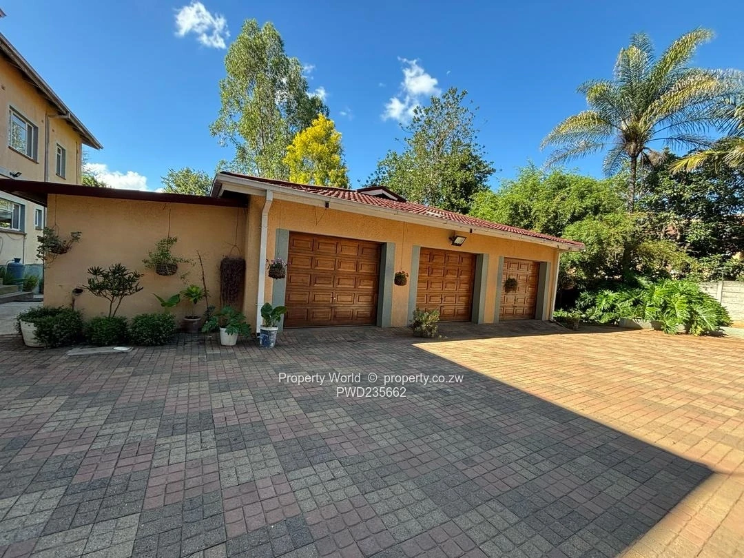 The property is fully walled, with an electric gate, triple automatic lockup garages, storerooms, staff quarters and a borehole.