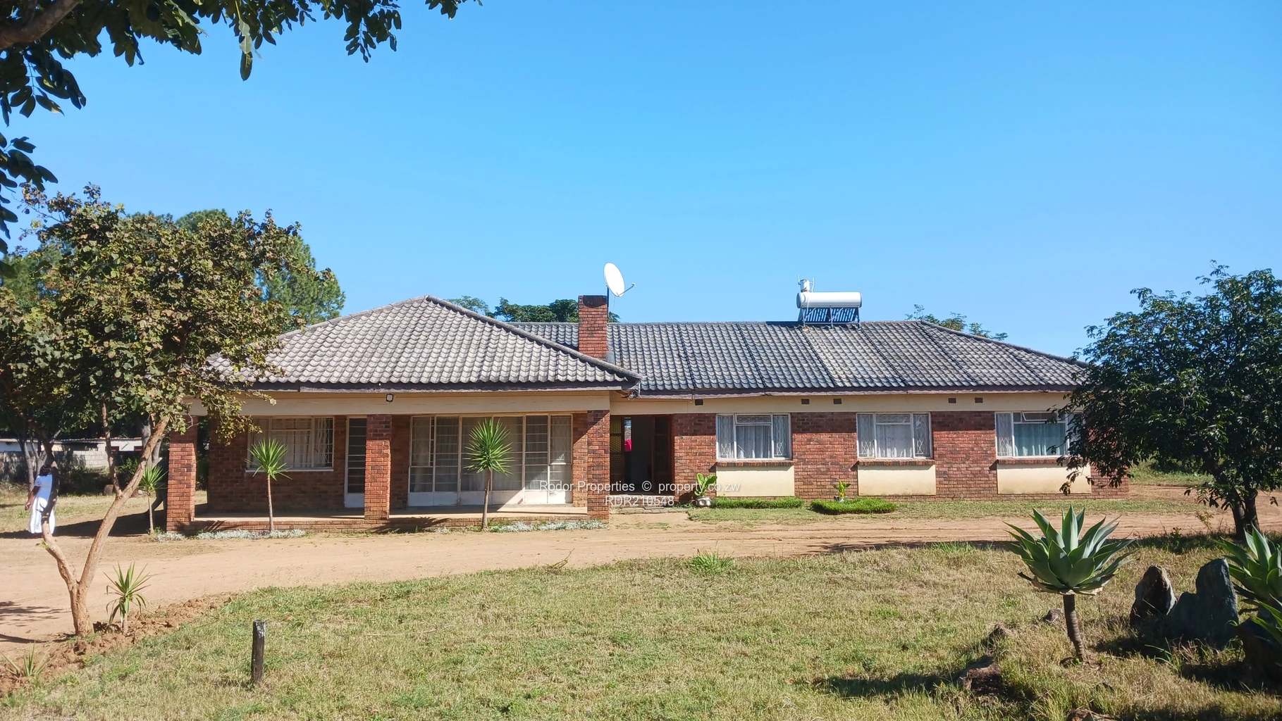 *RODOR* This is a brick under tile house, featuring four bedrooms, each with built-in wardrobes. The main bedroom includes an ensuite and a dressing area. The home also offers a combined lounge and dining room, a fitted kitchen, TV lounge, study, a separate toilet, and shared bathroom. It is equipped with a solar geyser, and the property is fully walled and gated. The land size is 4,047 square metres.