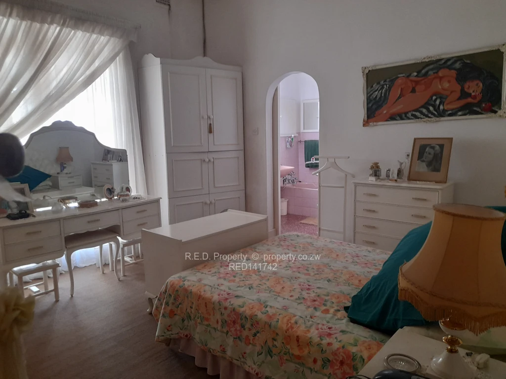 R.E.D Property presents a family home eligible for commercial rights, occupying approximately 800 square meters. The estate includes a cottage, staff quarters, double carports, a swimming pool, an overhead covered terrace, and a verdant garden with a paved driveway, complemented by a prolific borehole equipped with a pump and motor. The main residence features two spacious bedrooms, two bathrooms, an open-plan living and dining area with a bar, and an additional lounge that merges seamlessly into a well-appointed kitchen complete with a scullery, pantry, and double oven with hob. Security is paramount, evidenced by an alarm system with sensors and a siren installed around the perimeter of the garden and house. The property is enclosed by walls and an electric gate. For more details, contact us today.