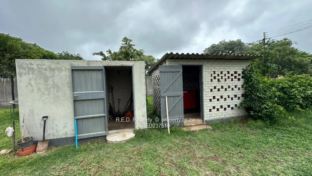 Outdoor living is well catered for with a swimming pool and a thatched entertainment area. The grounds are enhanced by a variety of mature fruit trees including guava, avocado, mulberry, orange, lemon, and grapefruit. A built-in cricket pitch adds a unique recreational feature. Parking and storage are provided by a three-span carport with two adjoining storerooms.