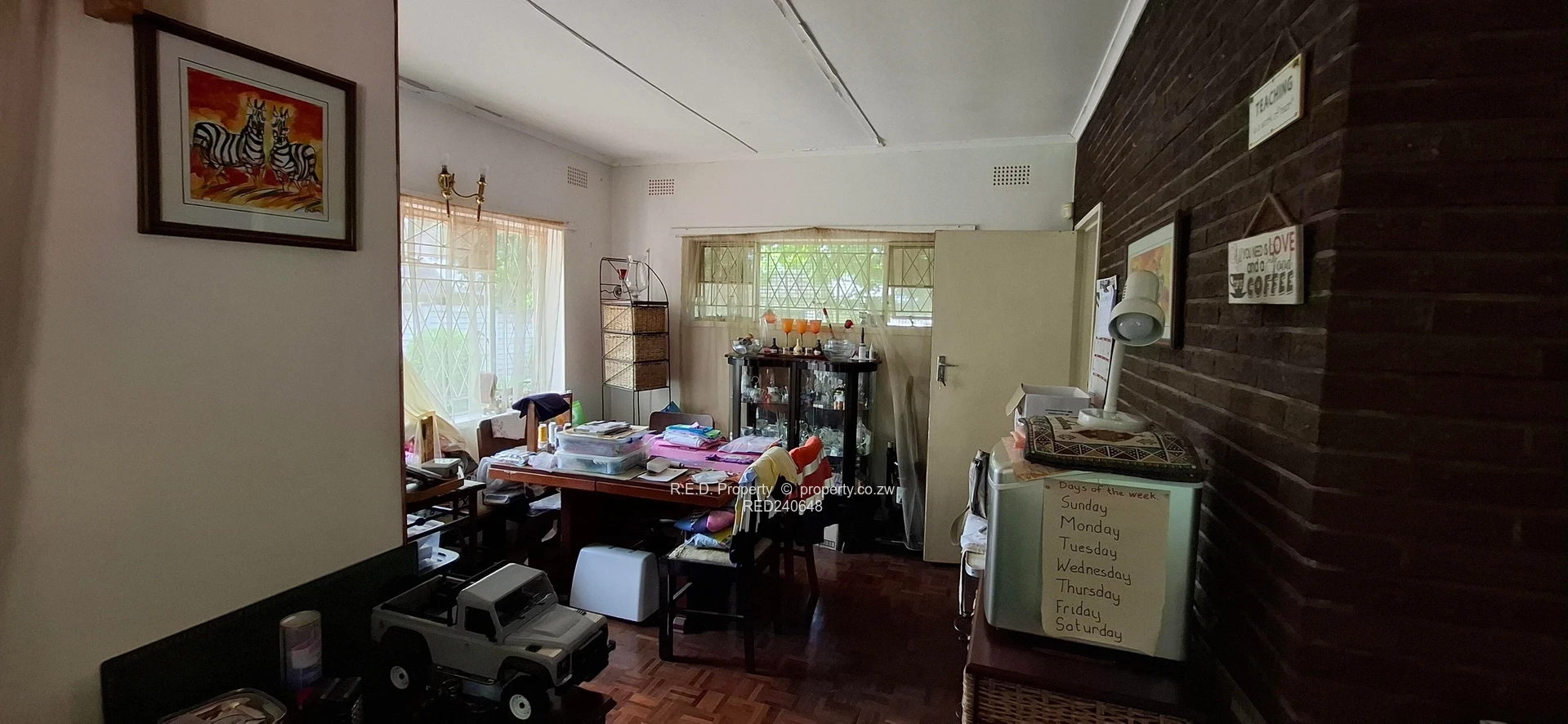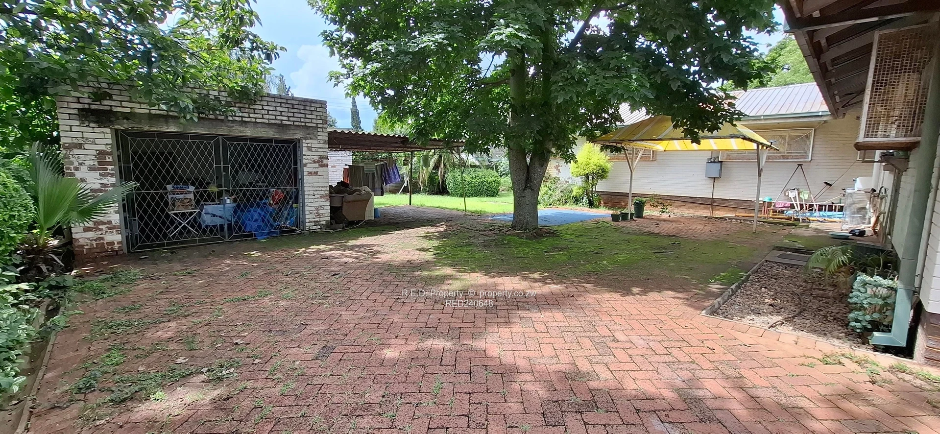 The property is fully walled on all four sides with a sliding gate, and offers excellent parking with a lock-up garage, double carport, and an additional separate carport. There are also single domestic quarters and a small storage room.