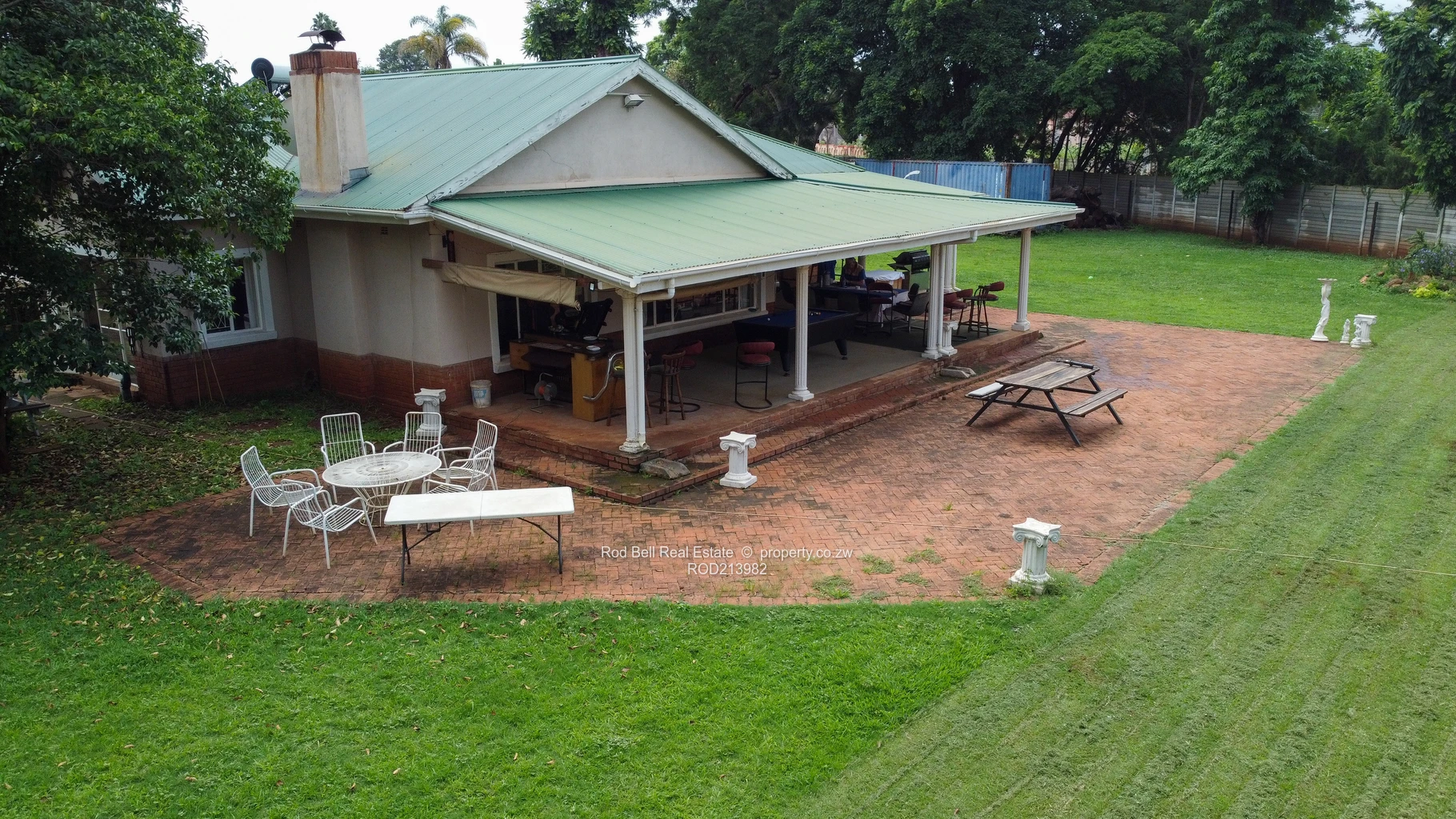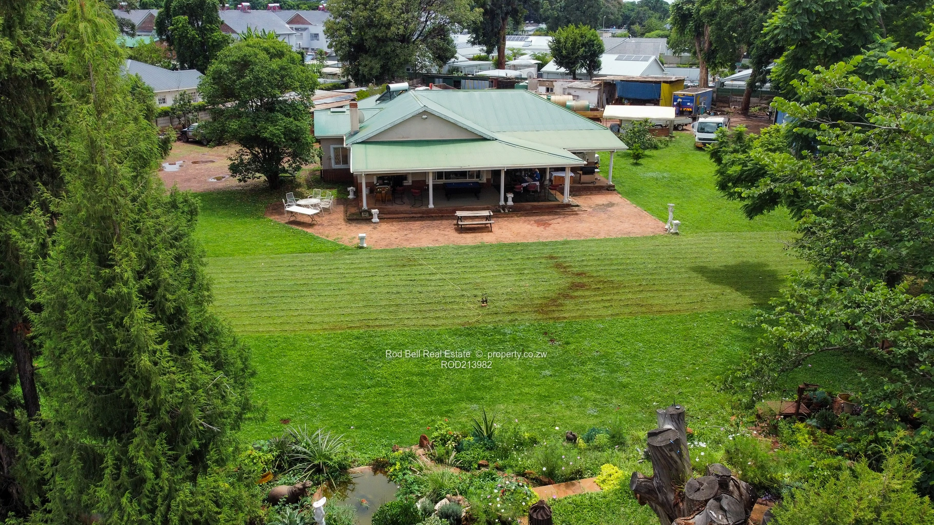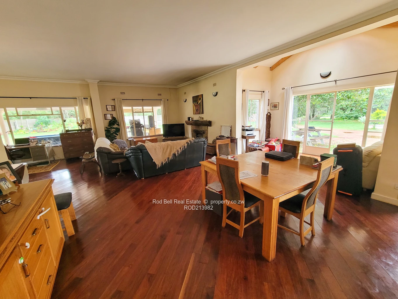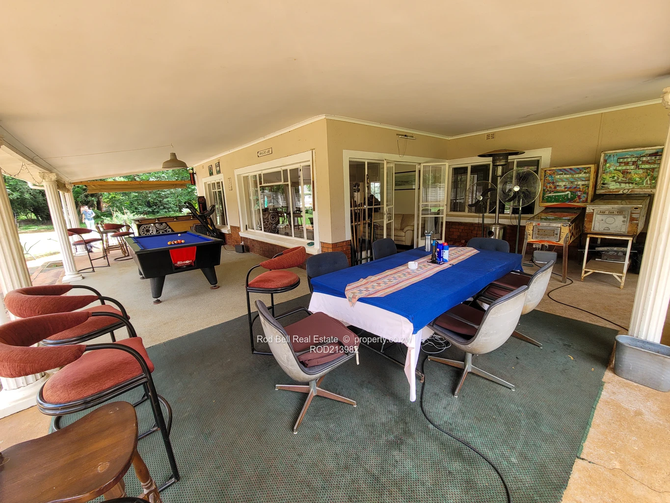 This 3-bedroom home / offices are sitting on a 5099m2 corner stand with 2 entrances. The house comprises 3 bedrooms, 2 bathrooms, 1 ensuite, fitted kitchen, open plan lounge / dining room which leads onto a large, covered verandah and into the garden. There are several out buildings, with a one-bedroom cottage and bathroom, and plans for an extension. The whole property is walled with an electric gate, seasonal borehole, 15 000l underground reservoir, there is a 5kva solar system and double lock up garage. This property may also suit a developer.