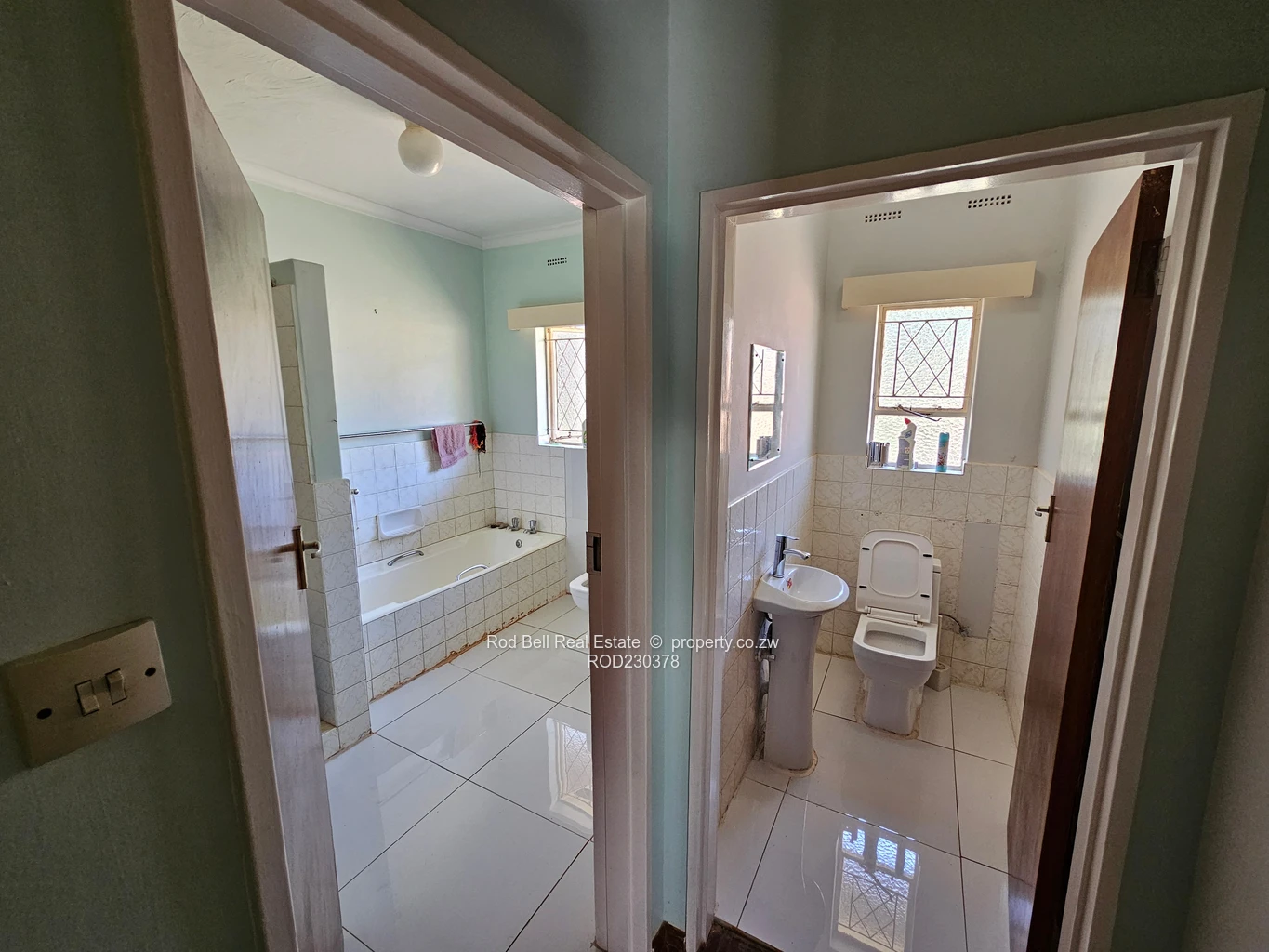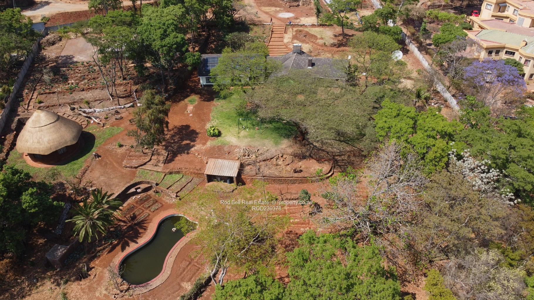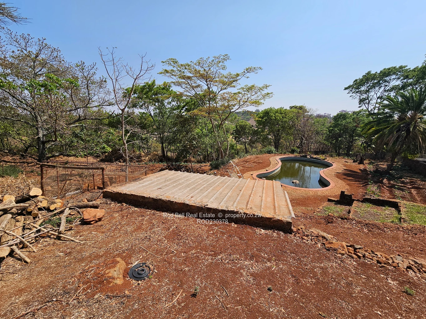 This 5-bedroom home sitting on 5.31 acres boasts 2 bathrooms with an ensuite, 2 lounges and a separate dining room, the one lounge leads on to a verandah and into a large garden, a large kitchen with scullery. The whole property is walled with a pool, which is currently being used as a pond, the garden is being serviced by a good borehole. There are 3 lock up garages and double staff quarters. There is a one-bedroom thatched cottage. The main house has a solar system and solar geyser.