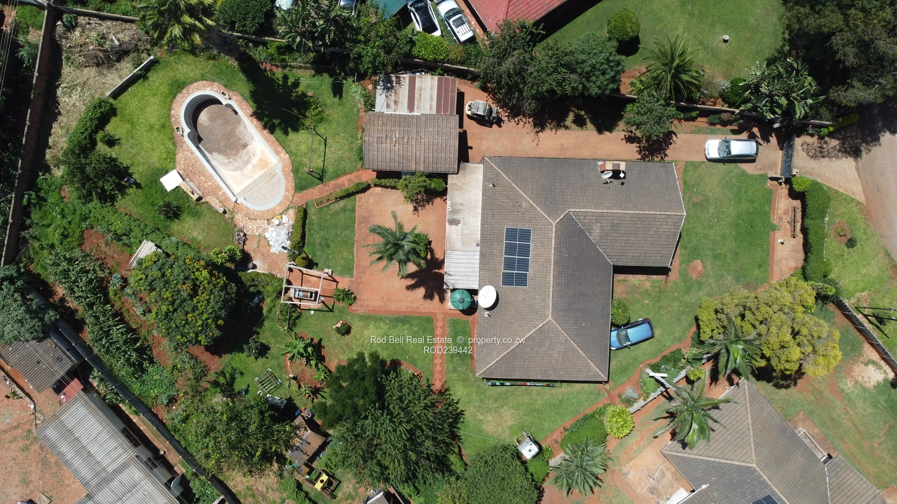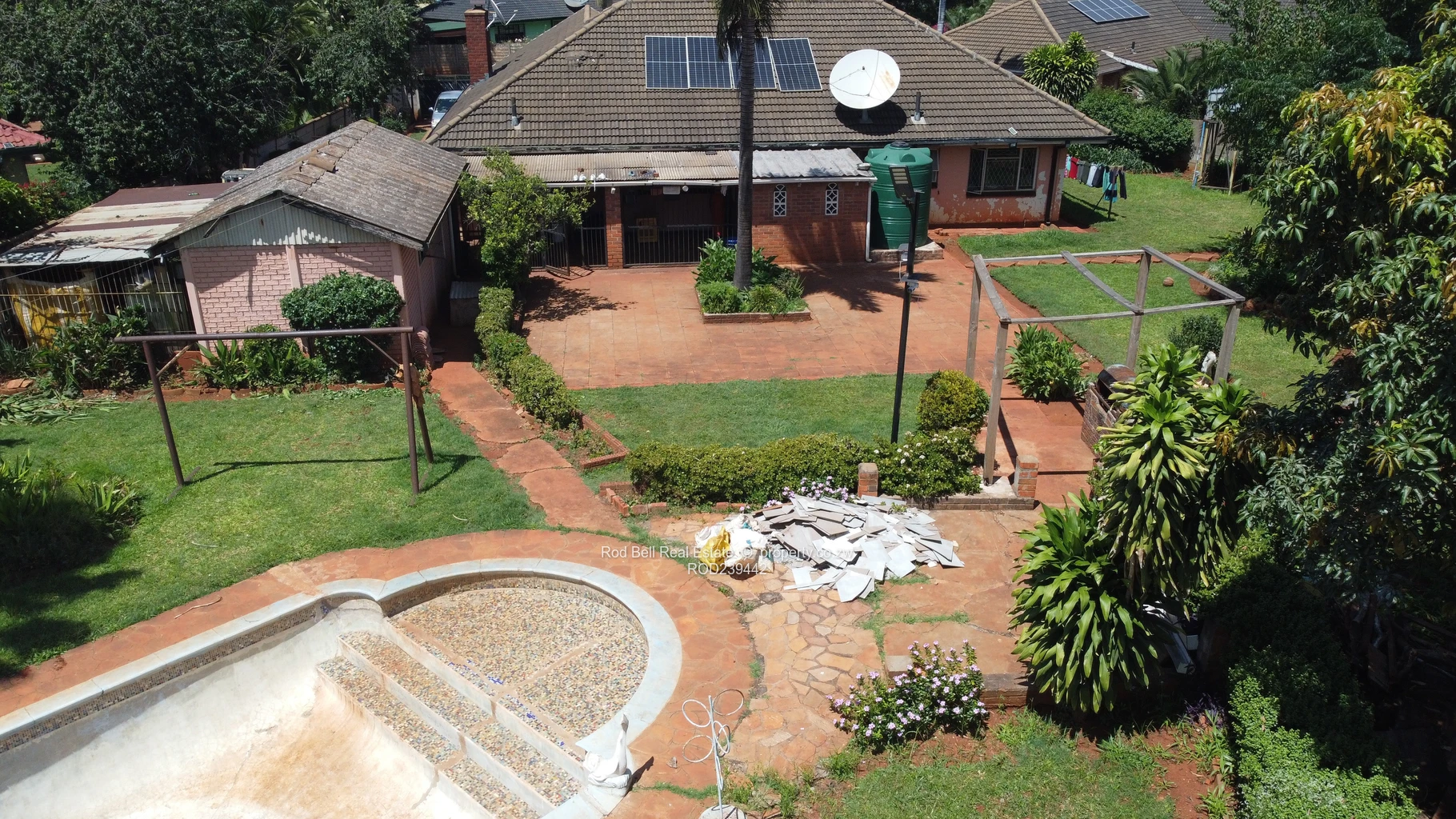 This 3-bedroom home comprises of 2 bathrooms, fitted kitchen that leads into an enclosed back verandah, a separate dining room and lounge, which leads into an enclosed front verandah. The whole property is walled and gated. There is a double lock up garage and double enclosed carport. The garden is well established and there is a borehole.