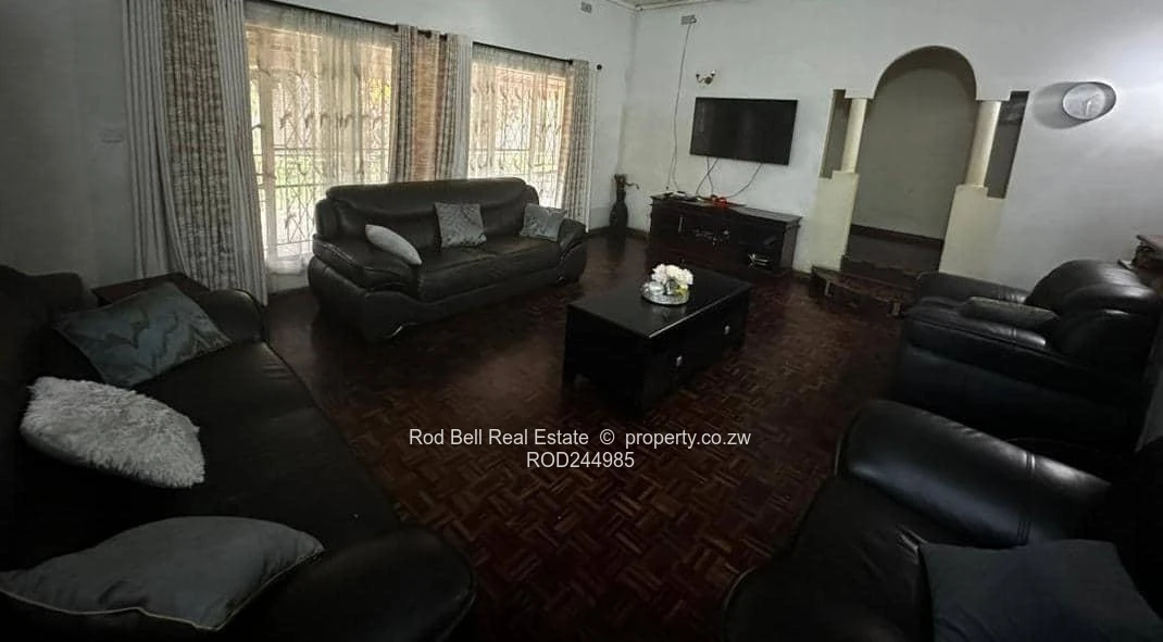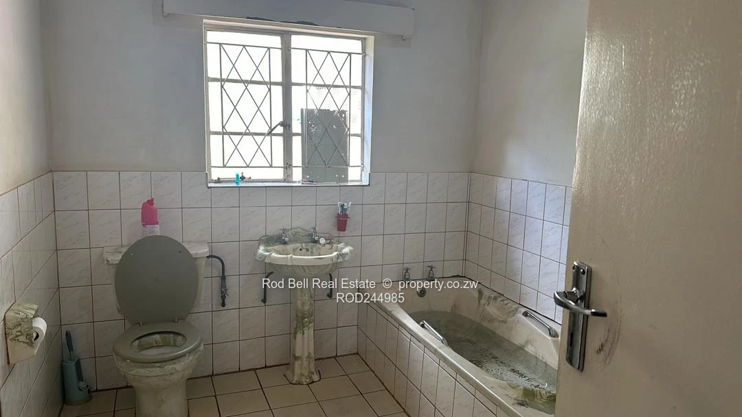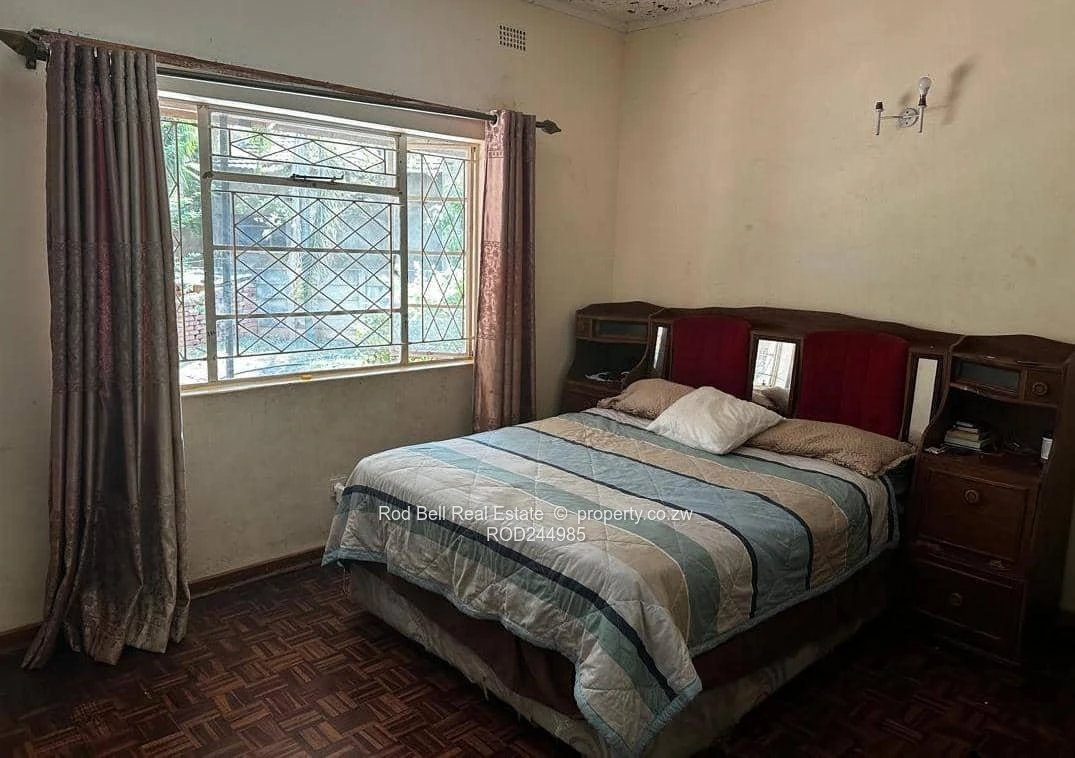 This 4-bedroom home comprises of 2 and a half bathrooms, 1 ensuite, fitted kitchen with a walk in pantry, separate lounge and dining room which leads on to a verandah and into the garden with swimming pool and outdoor bar and braai area. There is a neat brick driveway which leads from the gate to the outside building which contains a brick garage with is large enough to park 3 cars with shelving, tool room, laundry and storeroom and staff quarters. All outside windows have burglar bars and all the rooms have ceiling fans.