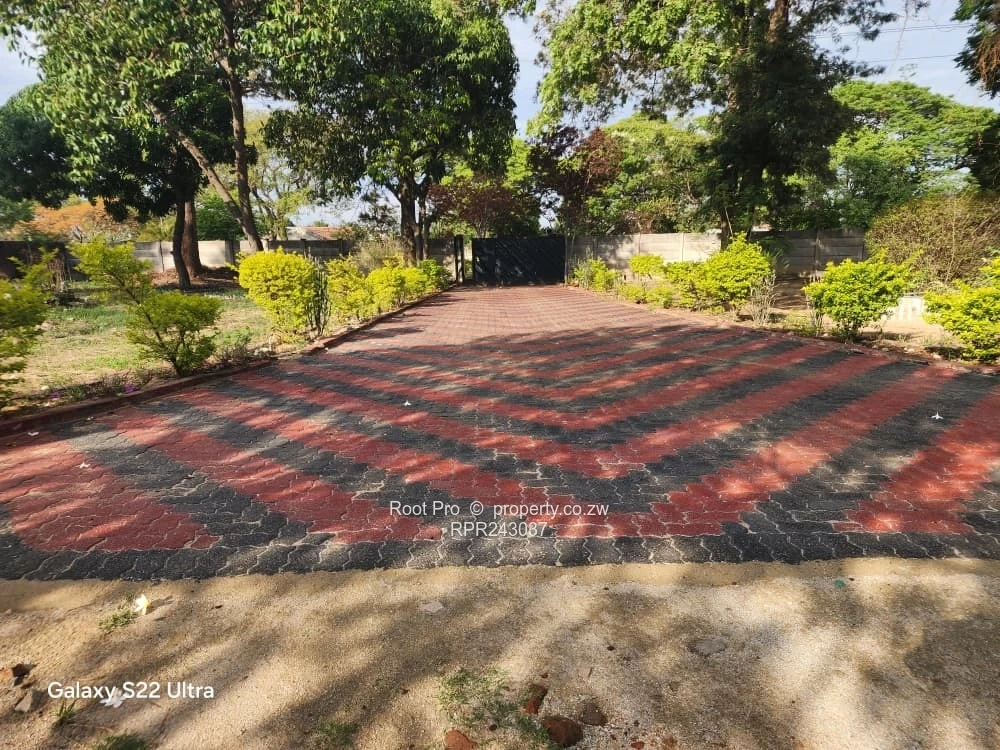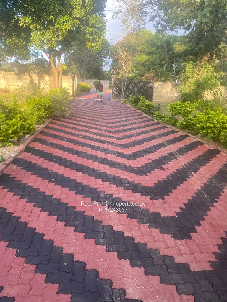 Spacious family home on a generous 3,000 m² stand in sought-after Waterfalls, Harare South — perfect for homeowners or investors looking for space and potential. This 3-bedroom, 1-bathroom residence occupies 680 m² of building area and sits well back from the gate with a long, attractive paved driveway (see paved entrance photo). The covered, open-plan living and dining area is bright and roomy with large windows that flood the space with natural light (see lounge/dining image). The kitchen features built-in wooden cabinetry, tiled splashback and a hob/oven ready for daily family use (see kitchen photo). A practical hallway links the living spaces and bedrooms (see corridor photo).